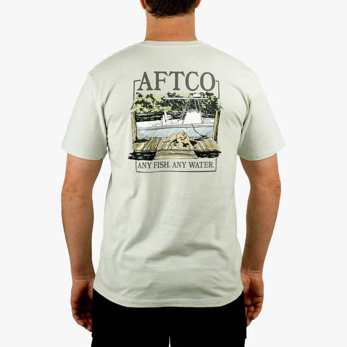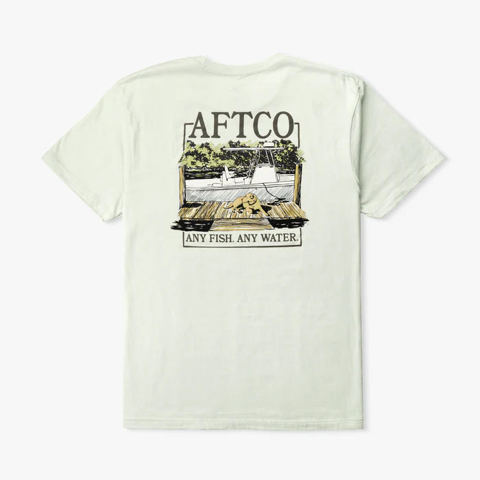 Get ready for the saltwater adventure of a lifetime with the Aftco Men's Seek T-Shirt. Featuring a center console and loyal labrador retriever, this shirt is made from a durable cotton-poly blend for endless comfort. Perfect for fishing or relaxing, AFTCO has you covered in style.
