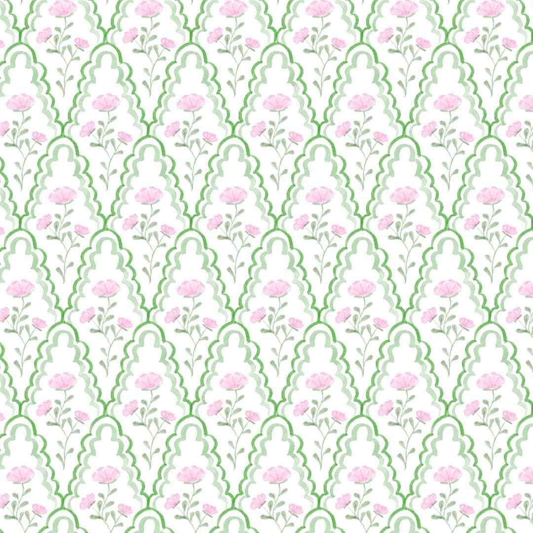 Krewe Kids Claire Green and Pink Floral Scallop Bubble