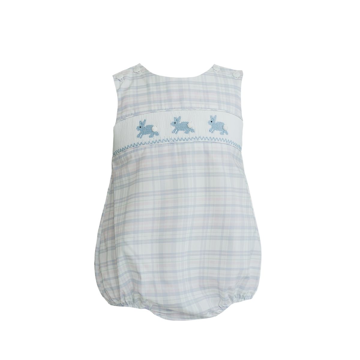 Krewe Kids Ethan Bunny Smocked Blue Spring Plaid Bubble