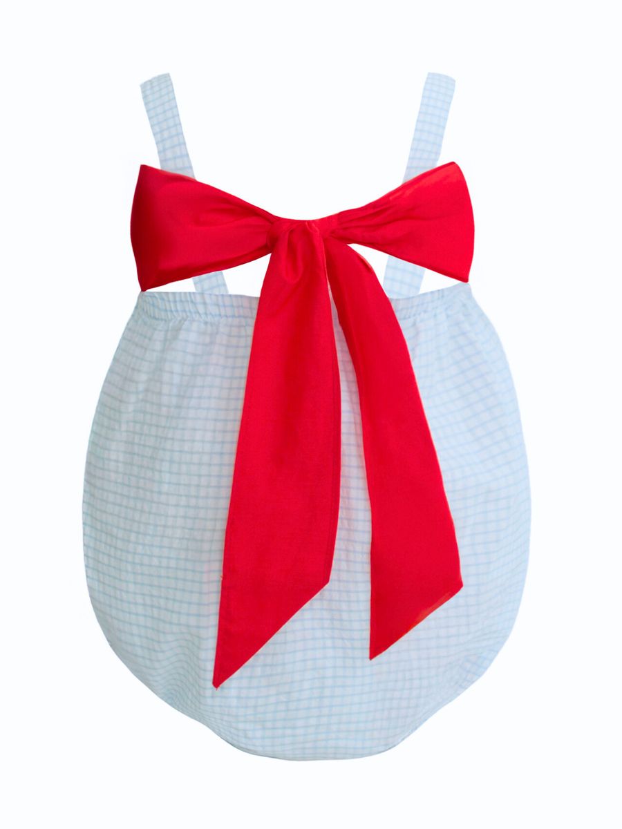 Krewe Kids Jesse Blue Windowpane Seersucker Smocked Crawfish Bubble