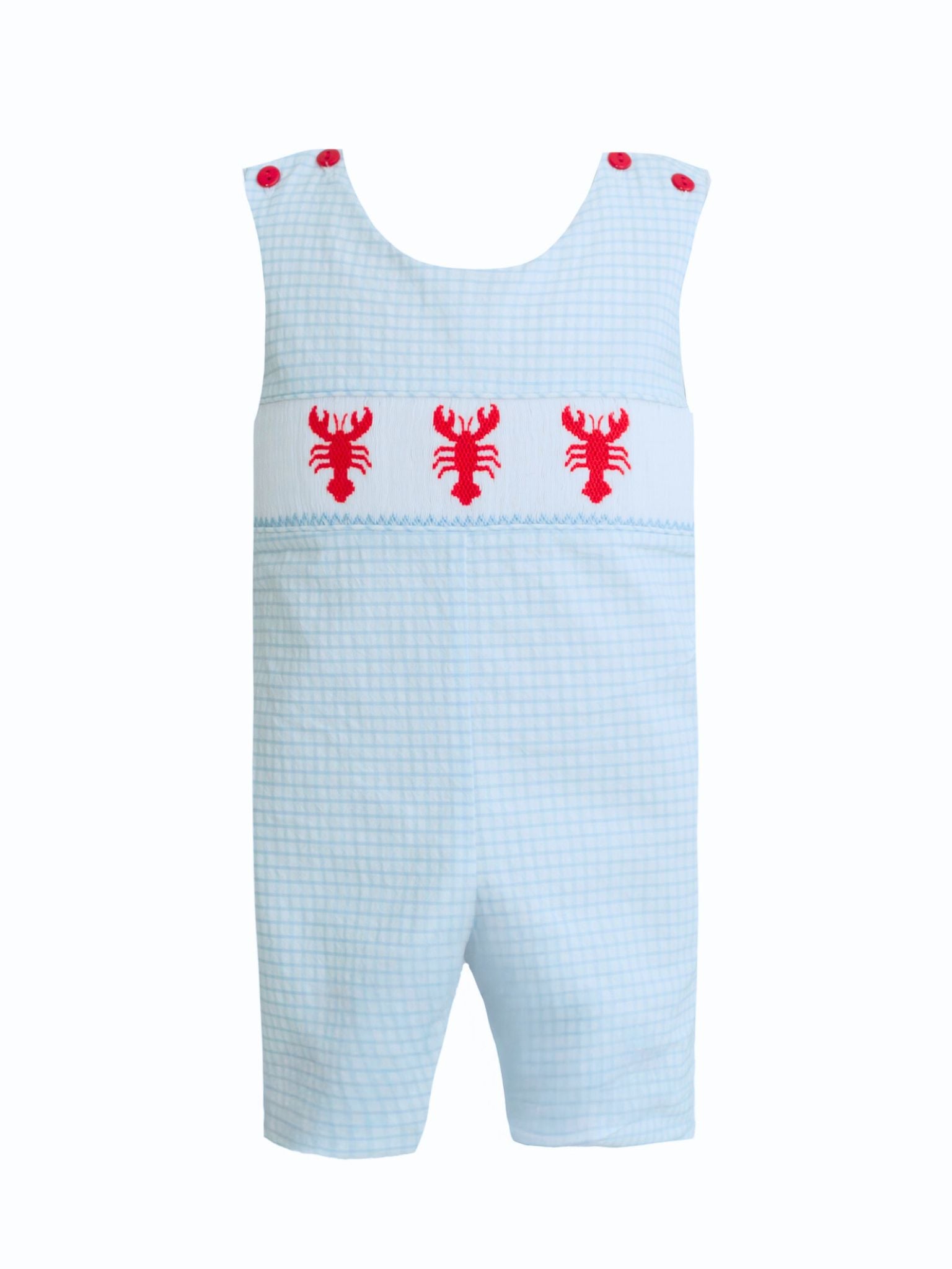 Krewe Kids Ethan Blue Windowpane Seersucker Smocked Crawfish Jon Jon
