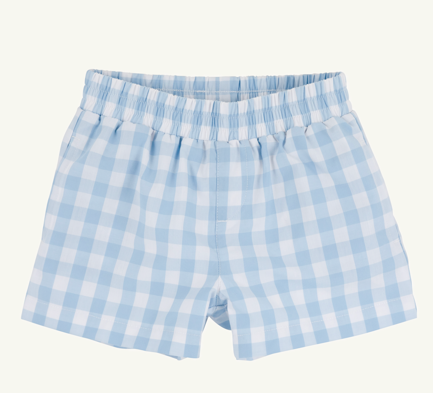 These charming Sheffield Shorts blend timeless preppy style with practical parenting perks. The elastic waist streamlines diaper changes and potty training while keeping your little one looking polished and put-together. The cheerful Apple of My Eye print with Wood Boat Blue Stork detailing adds personality to any outfit. Mix and match with our Prim & Proper Polos or Carter Crewnecks for effortless coordinated looks that parents and kids both love.