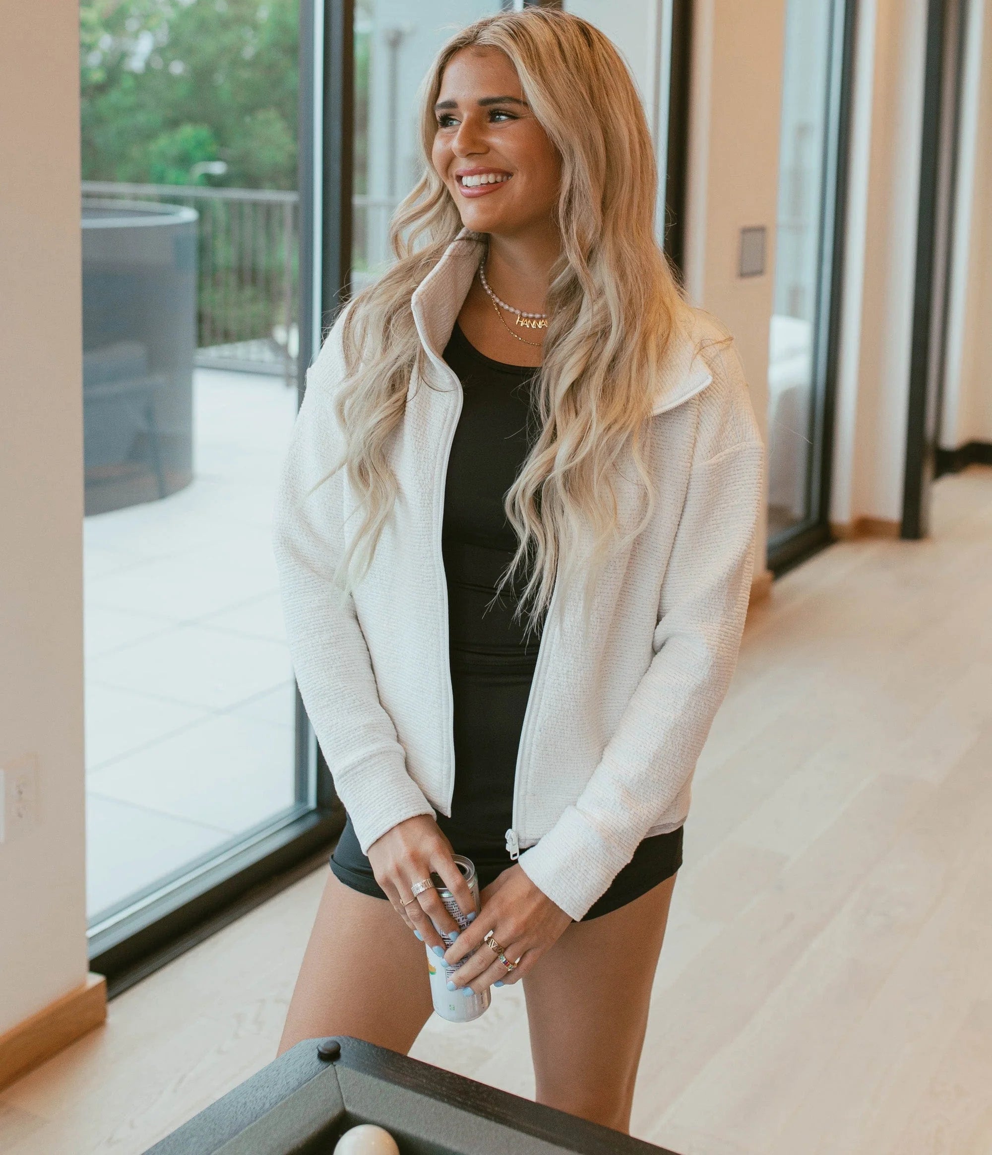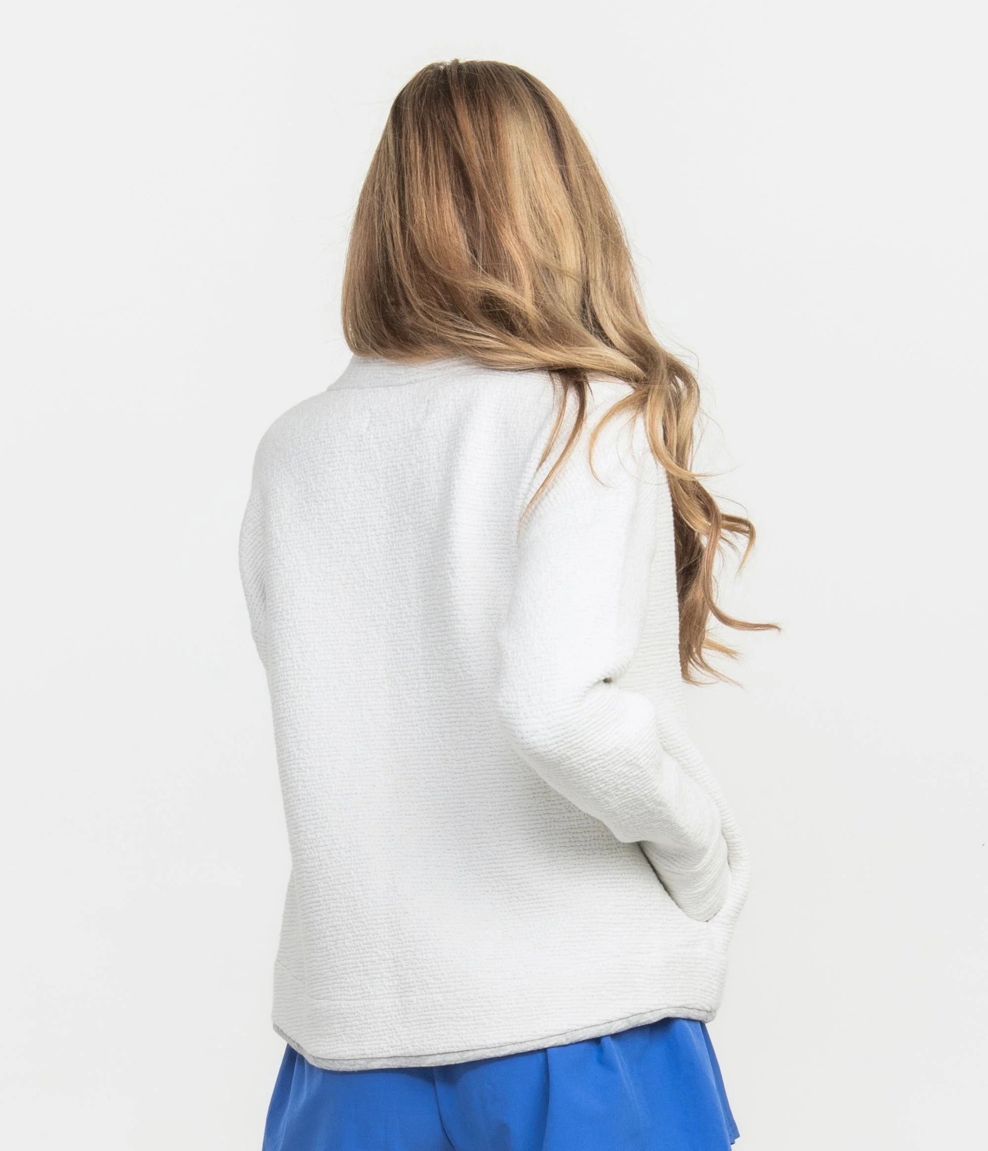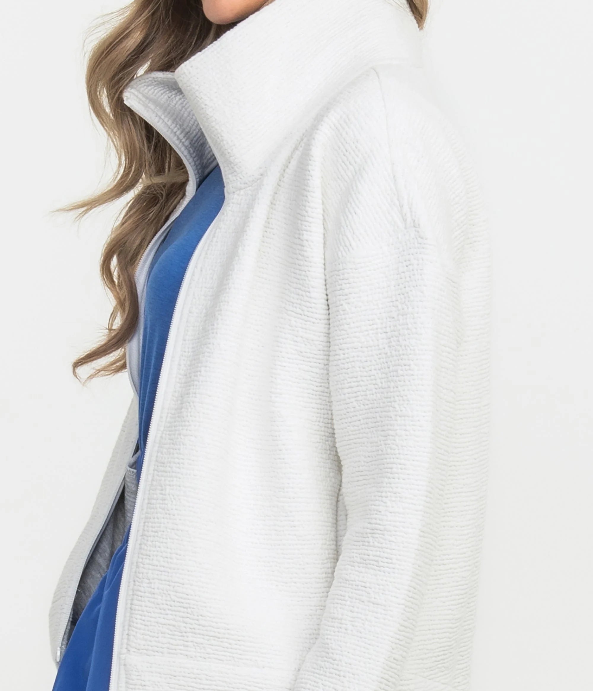 Slip into effortless style with our Textured Performance Jacket—a loose-fitting luxury layer that keeps up with your active lifestyle. The textured fabric adds visual interest while the relaxed silhouette ensures all-day comfort. Stash your essentials in four strategically placed pockets: two hidden side seam pockets for a sleek look and two inside pockets for secure storage. Whether you're heading to brunch or the office, this versatile piece transitions seamlessly from season to season. Model is 5'8" wearing size x-small in Bright White.