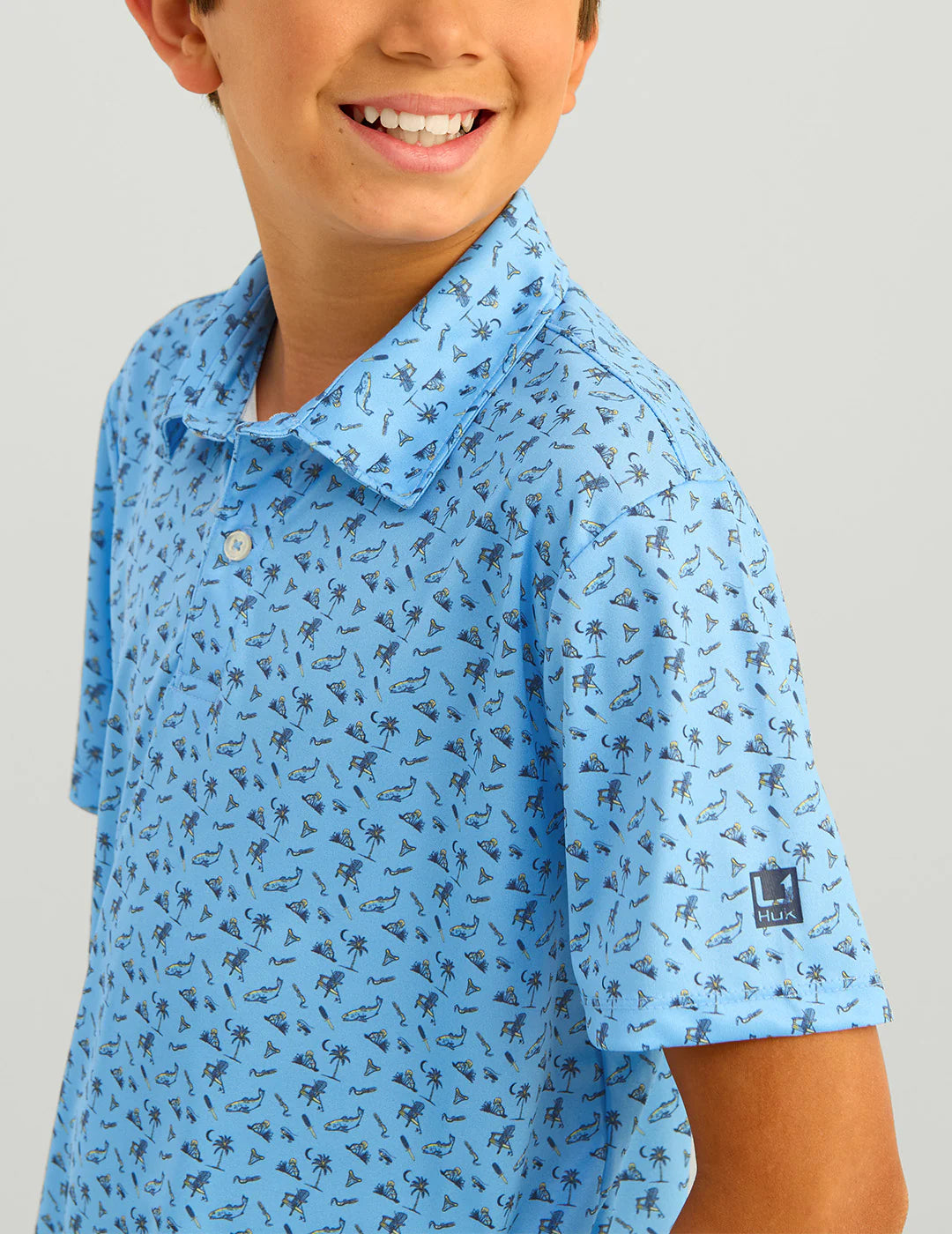 Introducing the Huk Kids Pursuit Performance Polo - perfect for any adventure on and off the water! With cooling fibers and sun protection, this polo offers ultimate comfort, fit, and performance. Plus, with antimicrobial construction, you'll stay fresh all day long. Get ready to conquer anything with Huk.