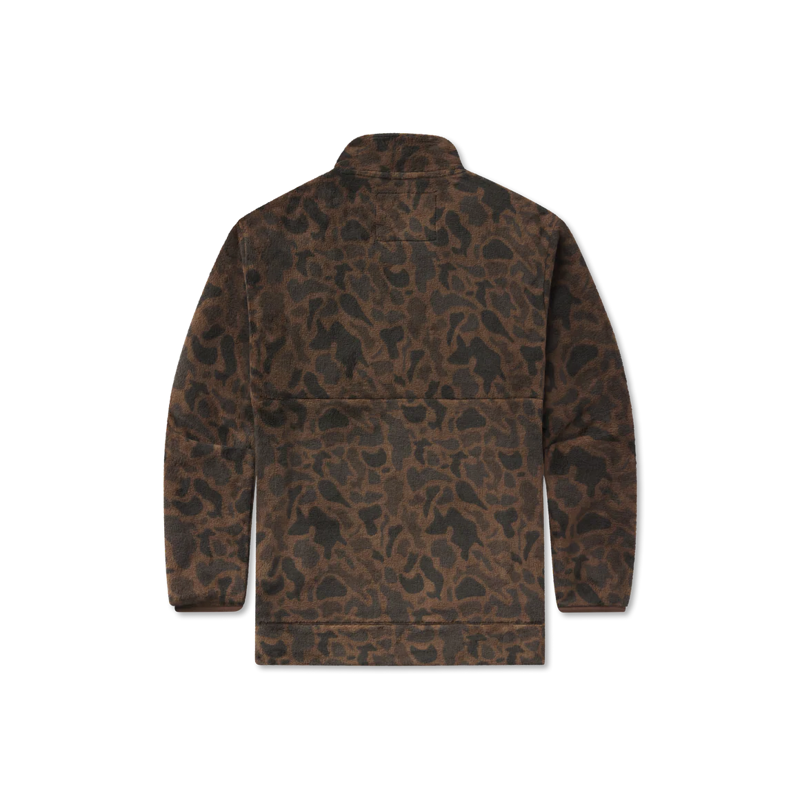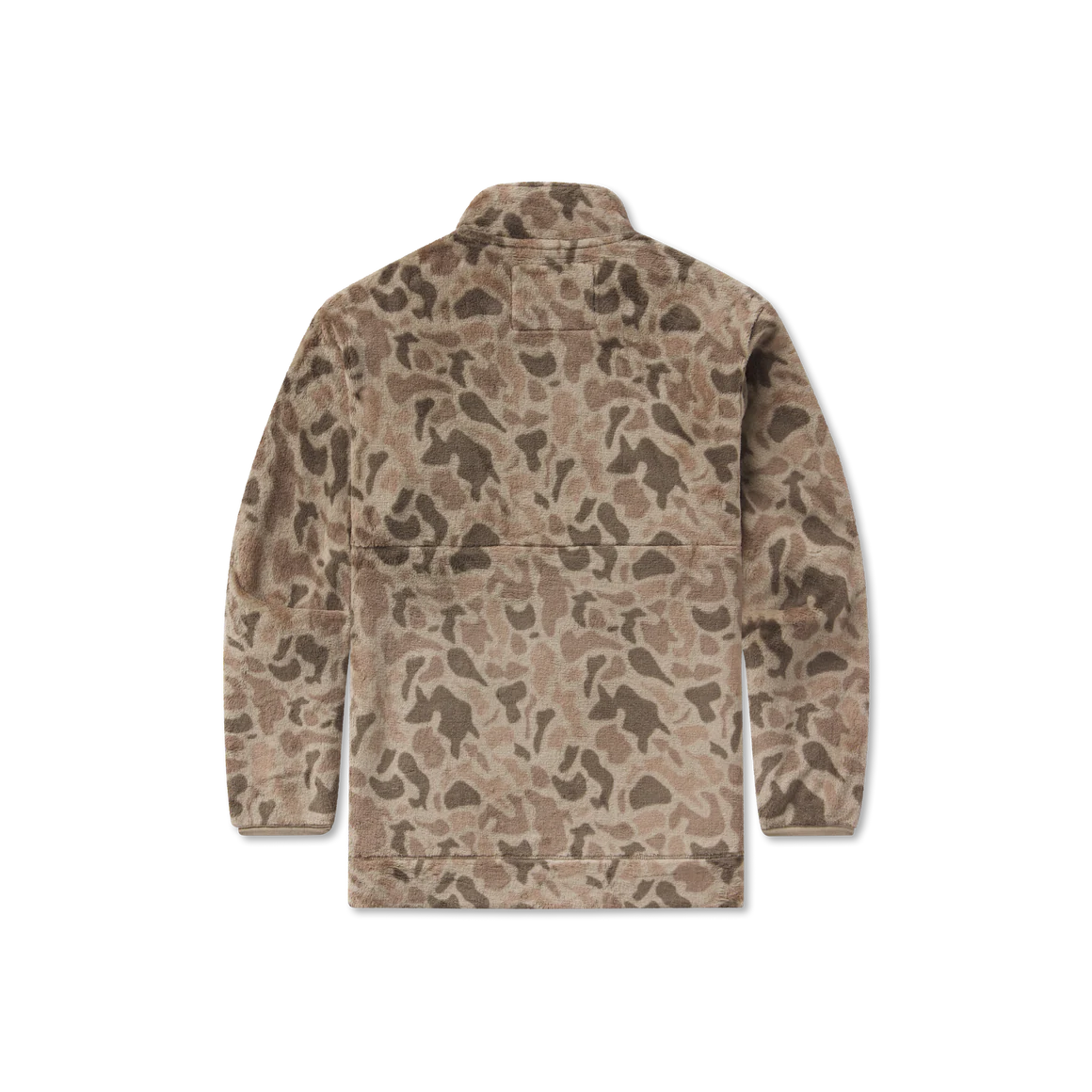Keep your young adventurer cozy with the Southern Marsh Boys' Wadsworth Fleece Pullover. Crafted from ultra-soft fleece and featuring a roomy kangaroo pocket, it's perfect for stashing treasures or warming little hands. The eye-catching retro camo print adds fun flair, while the half-zip neckline makes layering a breeze. Ideal for pairing with our crew neck youth pocket tees, this pullover is ready for any outdoor escapade.