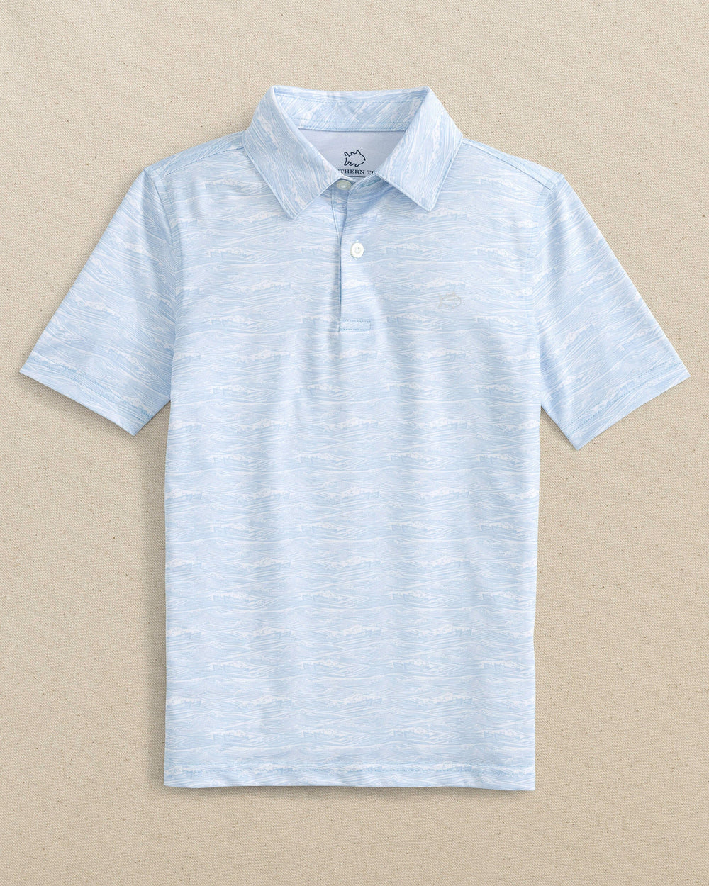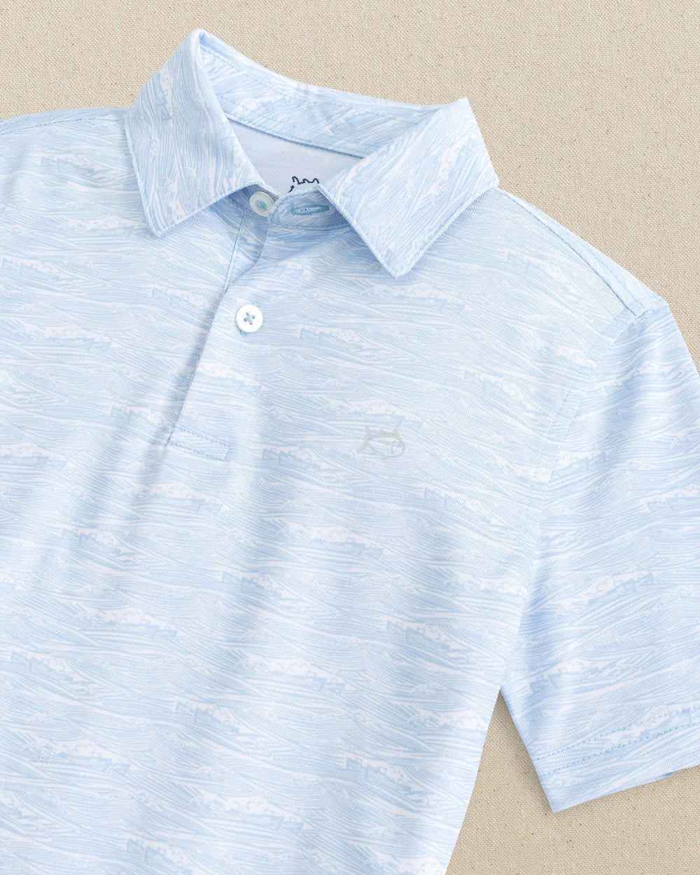 Get shipshape in style and comfort with our Youth Performance Polo. Made with a breathable recycled polyester blend, it features a two-button placket, side vents, and internal collar stays for a perfect fit. And with a fun Skipjack on the front, you'll be looking nautical and feeling great!