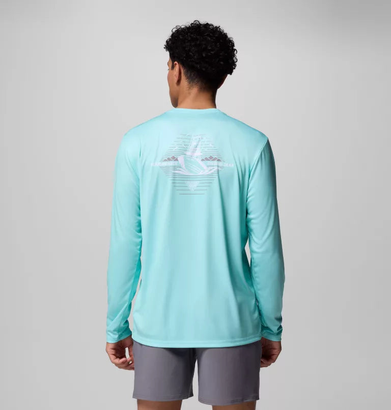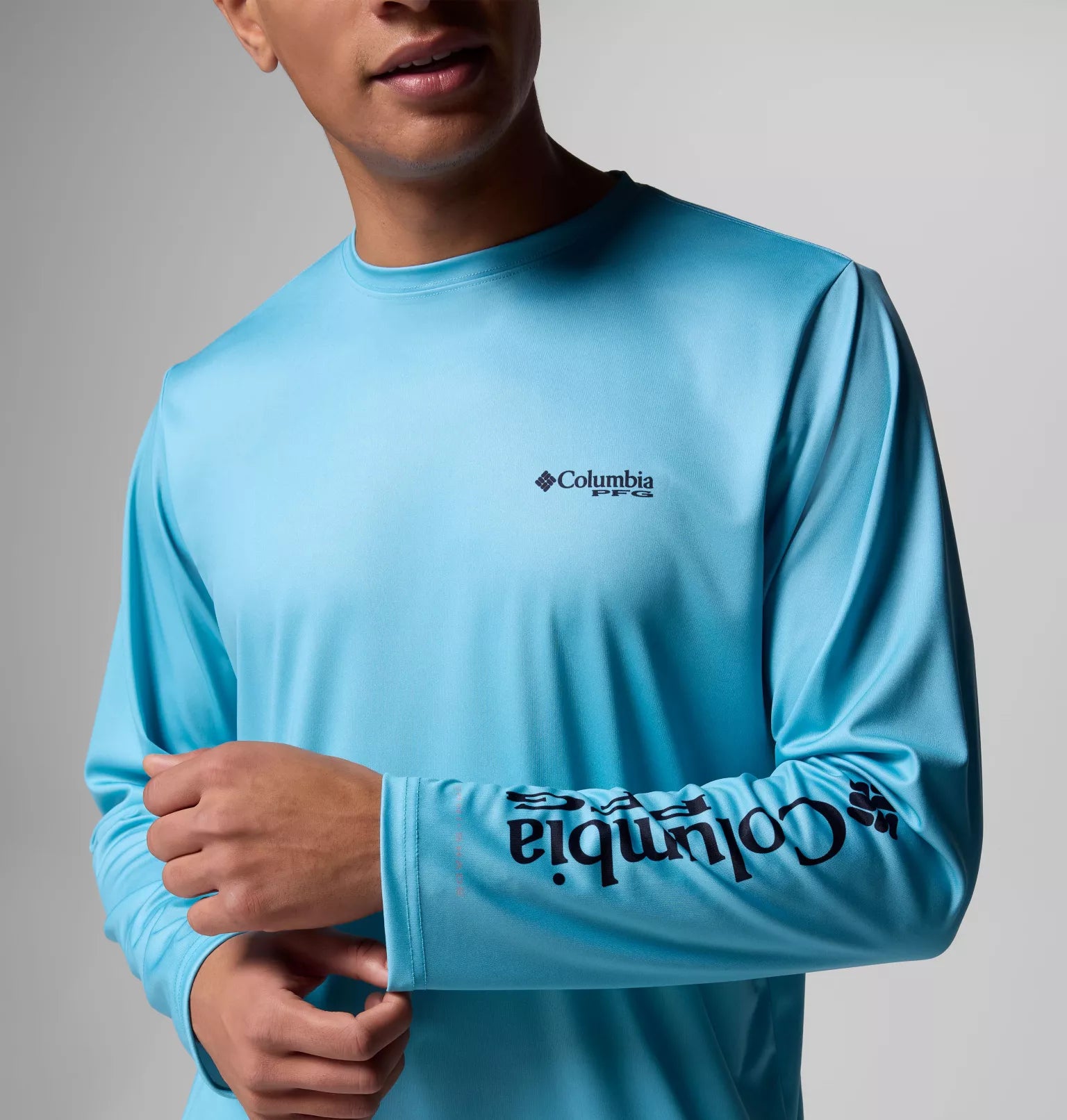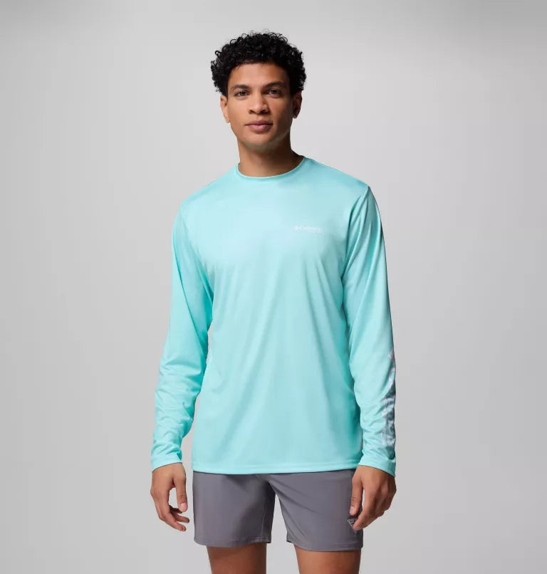 Stay cool and protected all day long with the Columbia Men's Terminal Tackle PFG Horizon Line Performance Shirt. Featuring broad-spectrum sun protection and moisture-wicking fabric, this long-sleeve shirt keeps you comfortable whether you're casting lines or chasing adventures. Perfect for those who love to be way out there, it’s your go-to gear for fun under the sun without the burn.