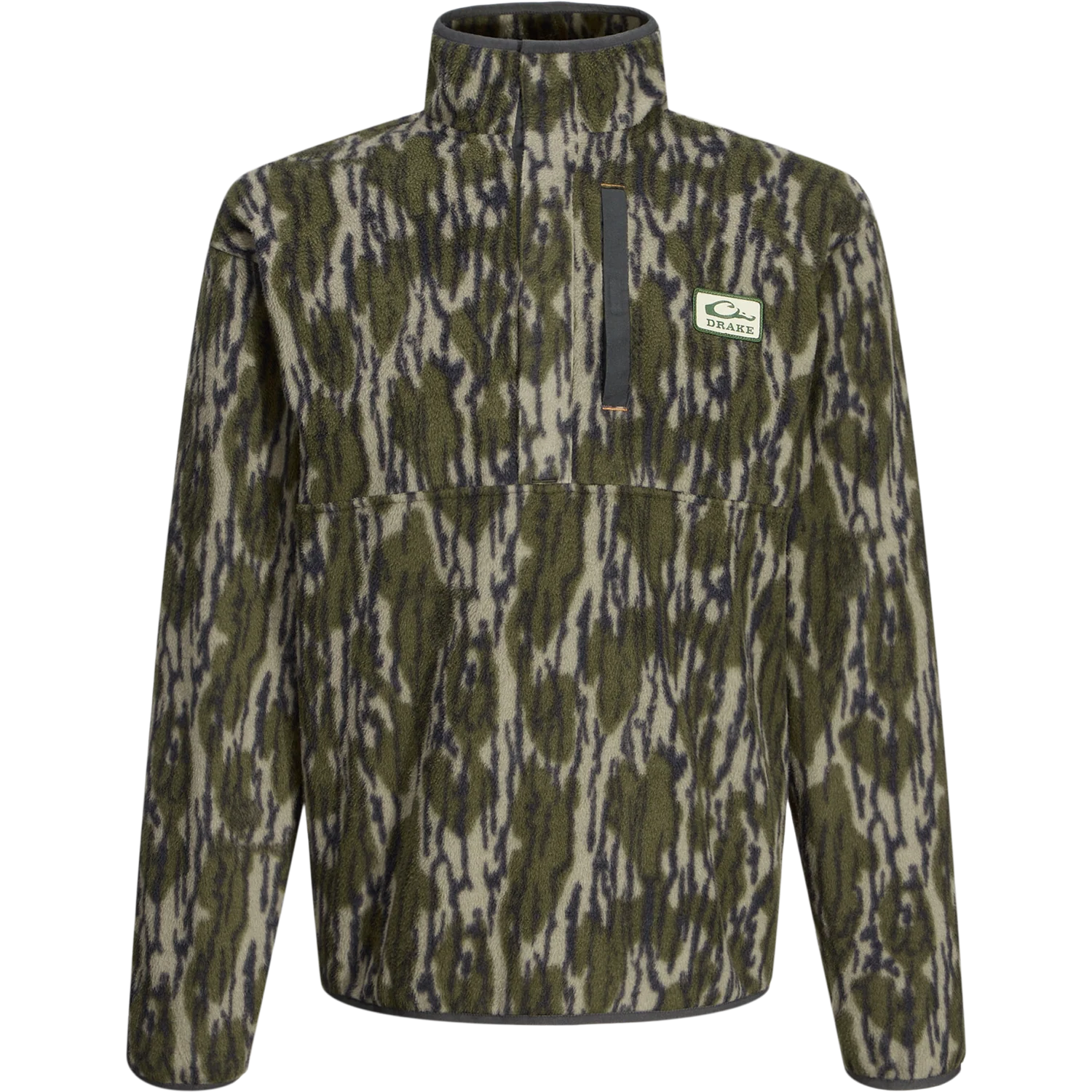 Introducing the Drake Men’s Camp Fleece Limited Edition Bottomland Snap Pullover. This updated piece features soft fleece fabric in a unique Mossy Oak Original Bottomland print. Stay stylish and warm with open side pockets, a Magnattach pocket, and half snap closure. Perfect for any occasion!