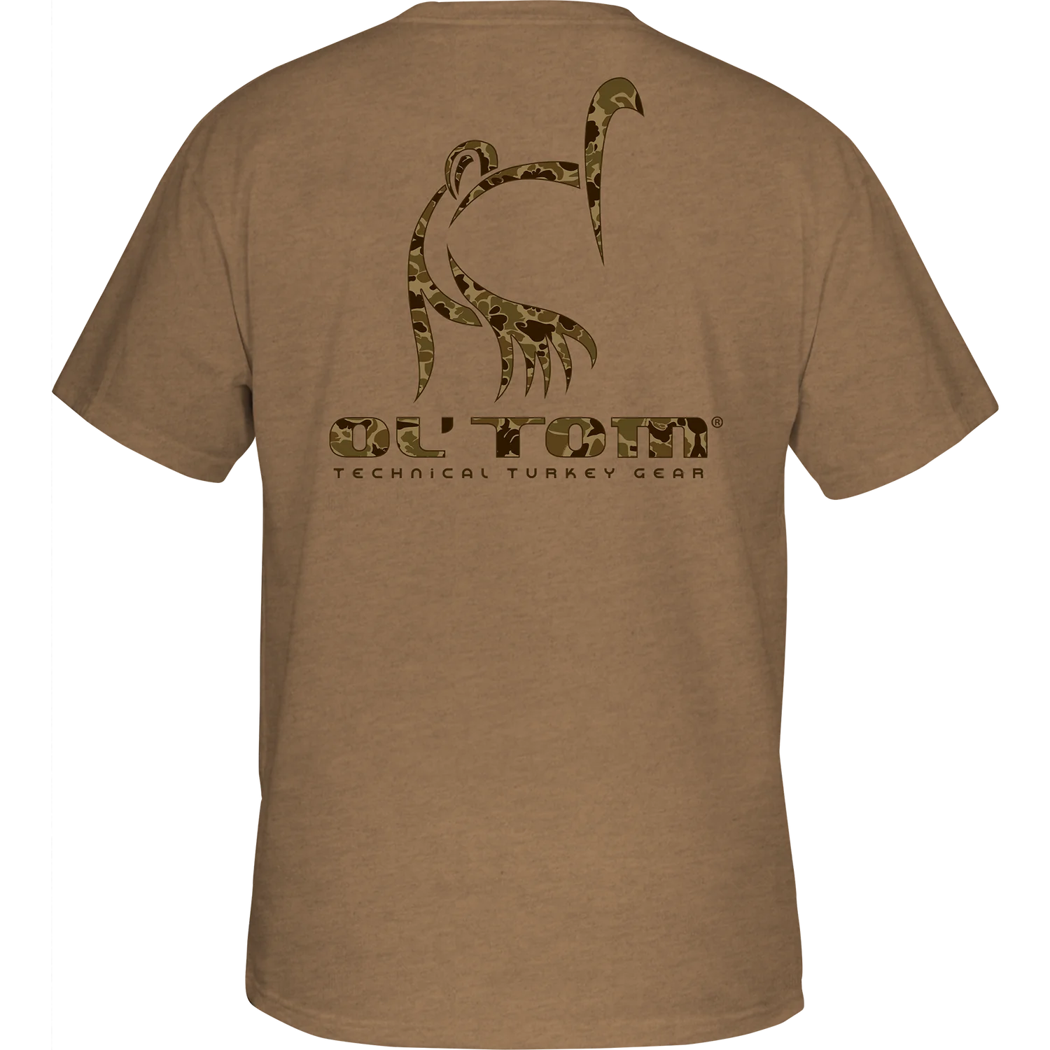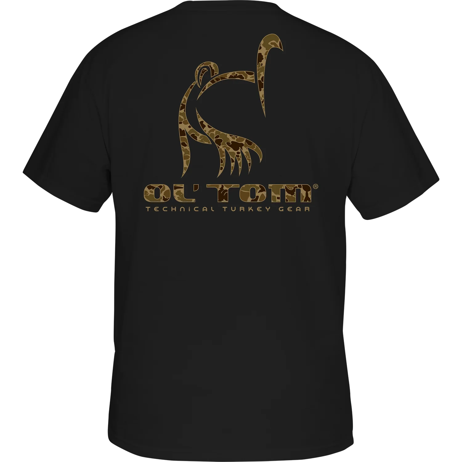 The Drake Men's Classic Ol' Tom Logo T-Shirt is the perfect combination of comfort and style. Made with a soft cotton and polyester blend, it features our iconic Ol' Tom turkey logo on the front pocket and a fun twist with our Old School camo pattern on the back. Get ready to stand out with this playful and quirky tee.