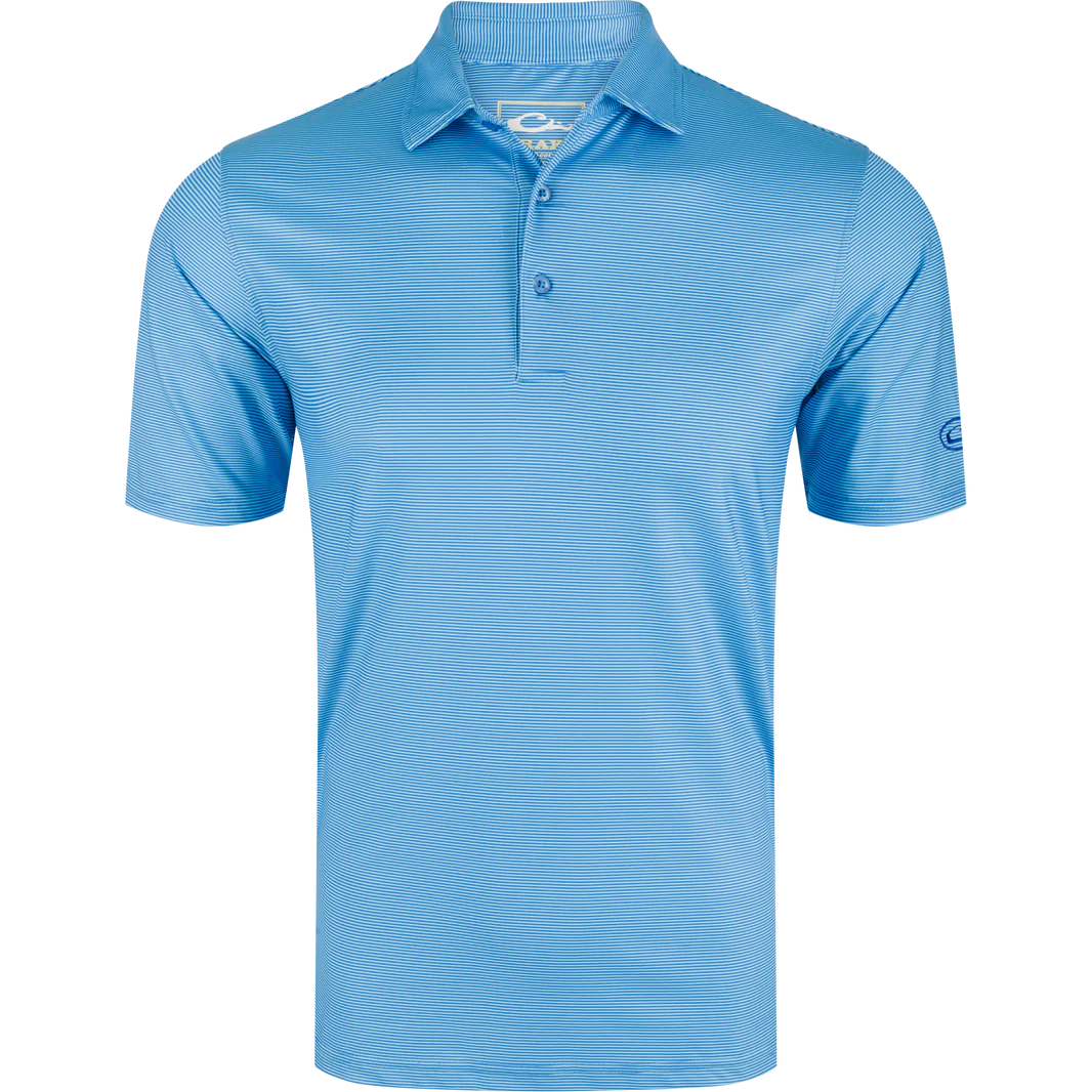 Stay cool and stylish with the Drake Men's Performance Chalk Striped Polo. With a UPF 30 rating for sun protection, moisture-wicking fabric, and built-in stretch, this polo is perfect for the course or office. Classic design meets modern performance for a timeless and comfortable look. Fore!