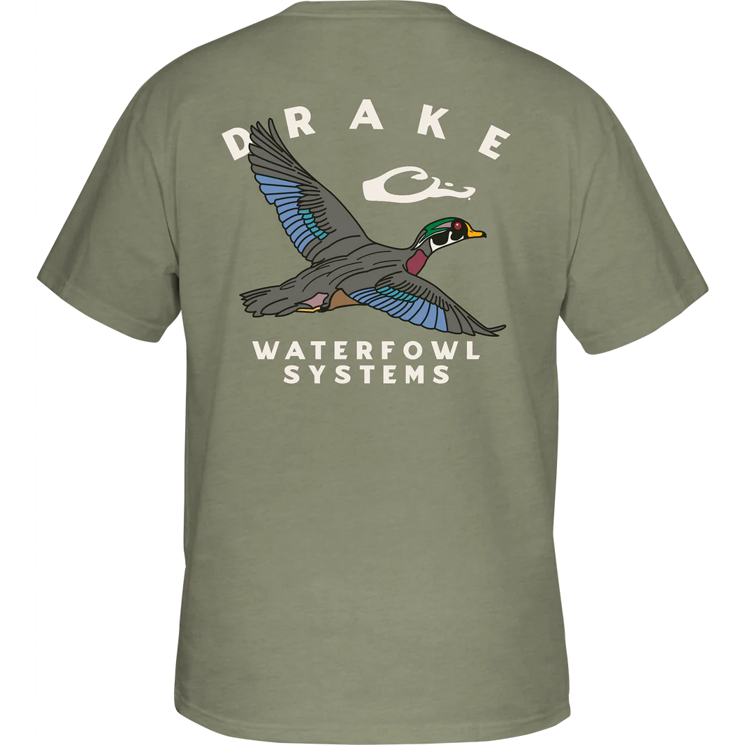 Get ready to make a statement with the Drake Men's Retro Wood Duck T-Shirt. Made with a soft and comfortable blend of cotton and polyester, this tee features a Drake logo on the front pocket and a unique Wood Duck design from their Retro Series. Show off your fun side with this playful and quirky tee.