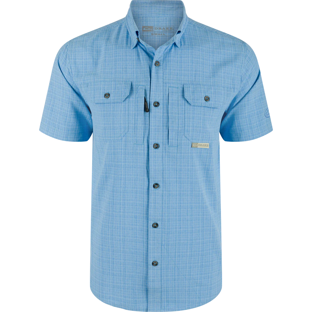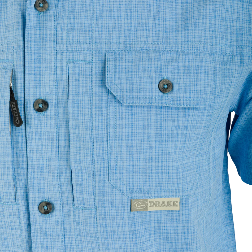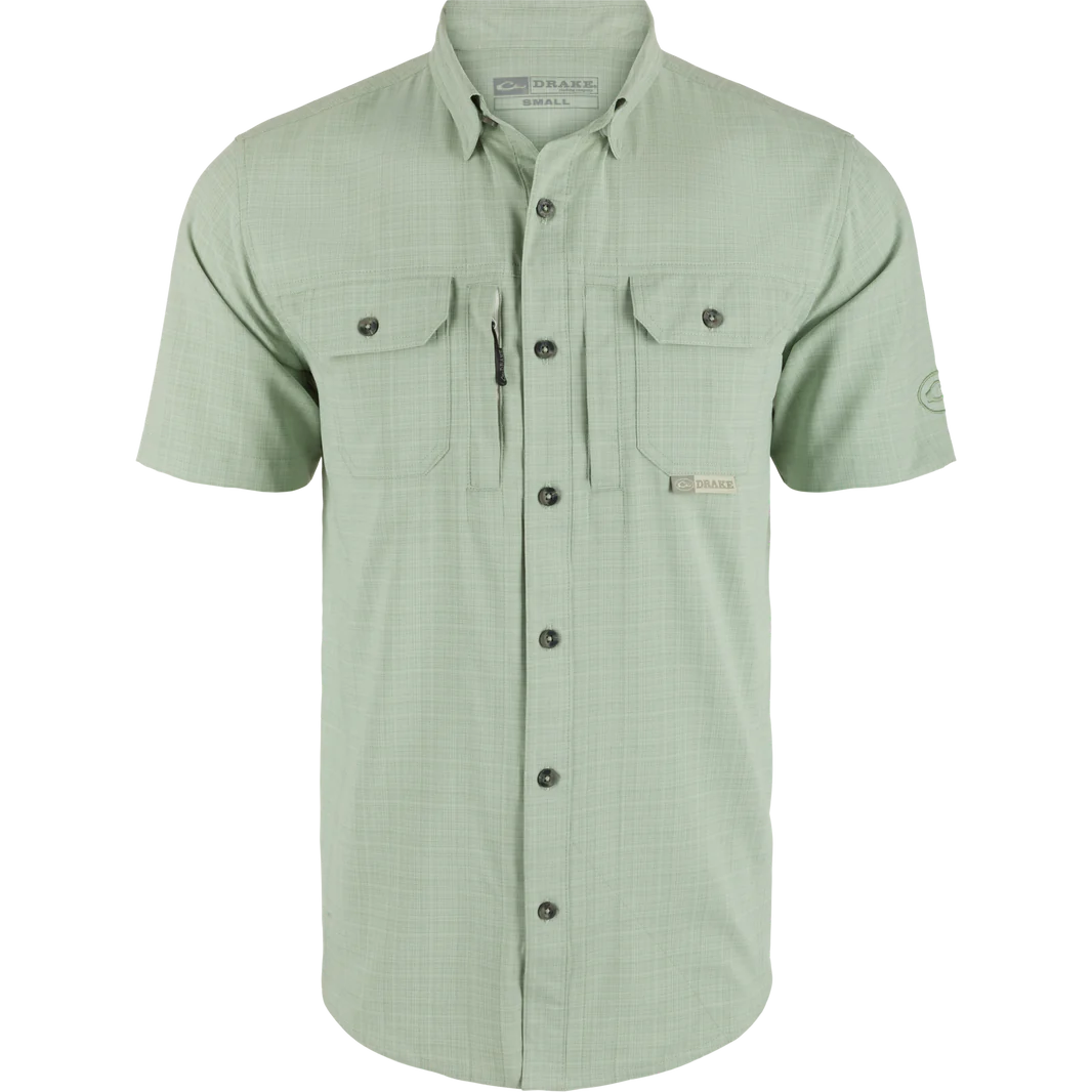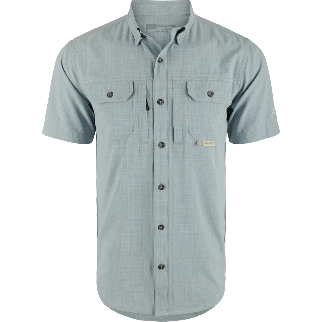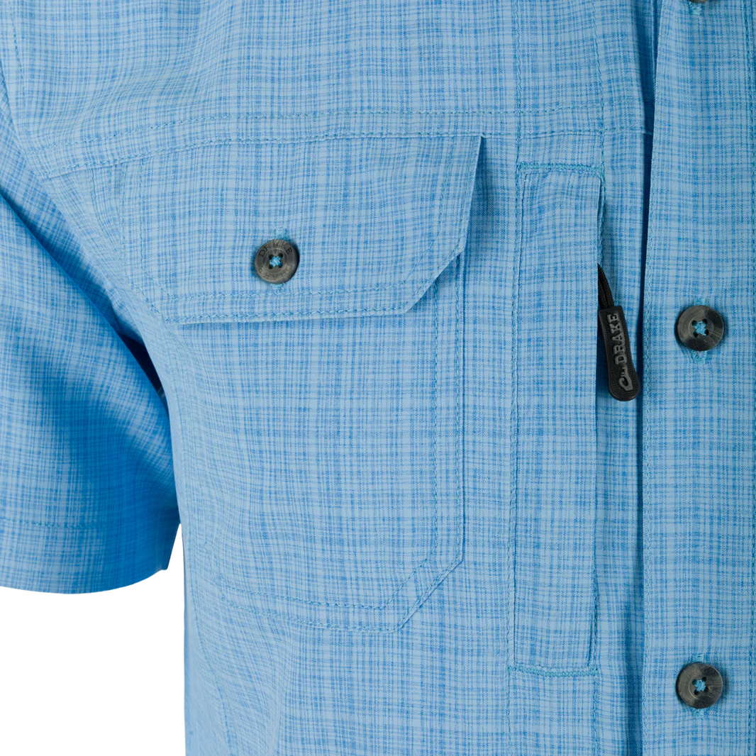 Don't just wing it, style it with Drake Men's Wingshooter Trey Cross Hatch Shirt! Made with a lightweight, moisture-wicking fabric, this shirt also provides UPF30 sun protection and natural stretch for easy movement. With hidden zippered and Magnattach pockets, a sculpted hem, and a built-in sunglass wipe, this shirt has it all. (Get it? "Wingshooter" and "wing it"? Okay, we'll see ourselves out.)