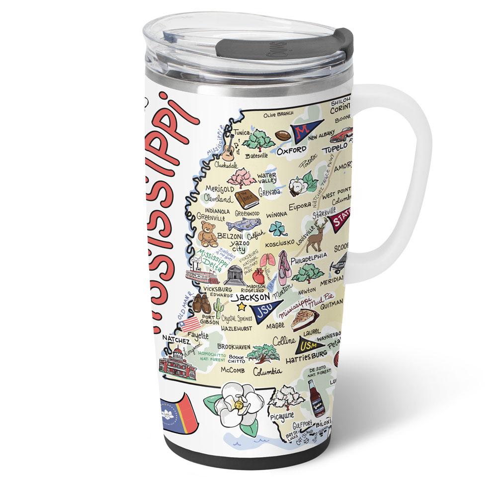 Take the comfort of home with you on-the-go with the Swig Mississippi Travel Mug! Designed by Fish-Kiss, this 22oz mug showcases what makes Mississippi unique. Plus, its cup holder-friendly shape and extra ounces make it perfect for your morning commute and beyond.