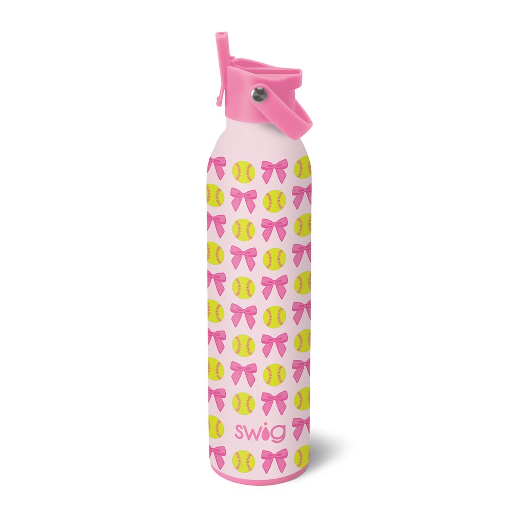 Introducing the Swig Pitch Hit Run Flip + Sip Bottle, your perfect traveling companion for the girl on the go! Show off your spirit with playful pink bows and bright yellow softballs while staying hydrated with the easy carry handle and straw. Stay thirsty, my friends.