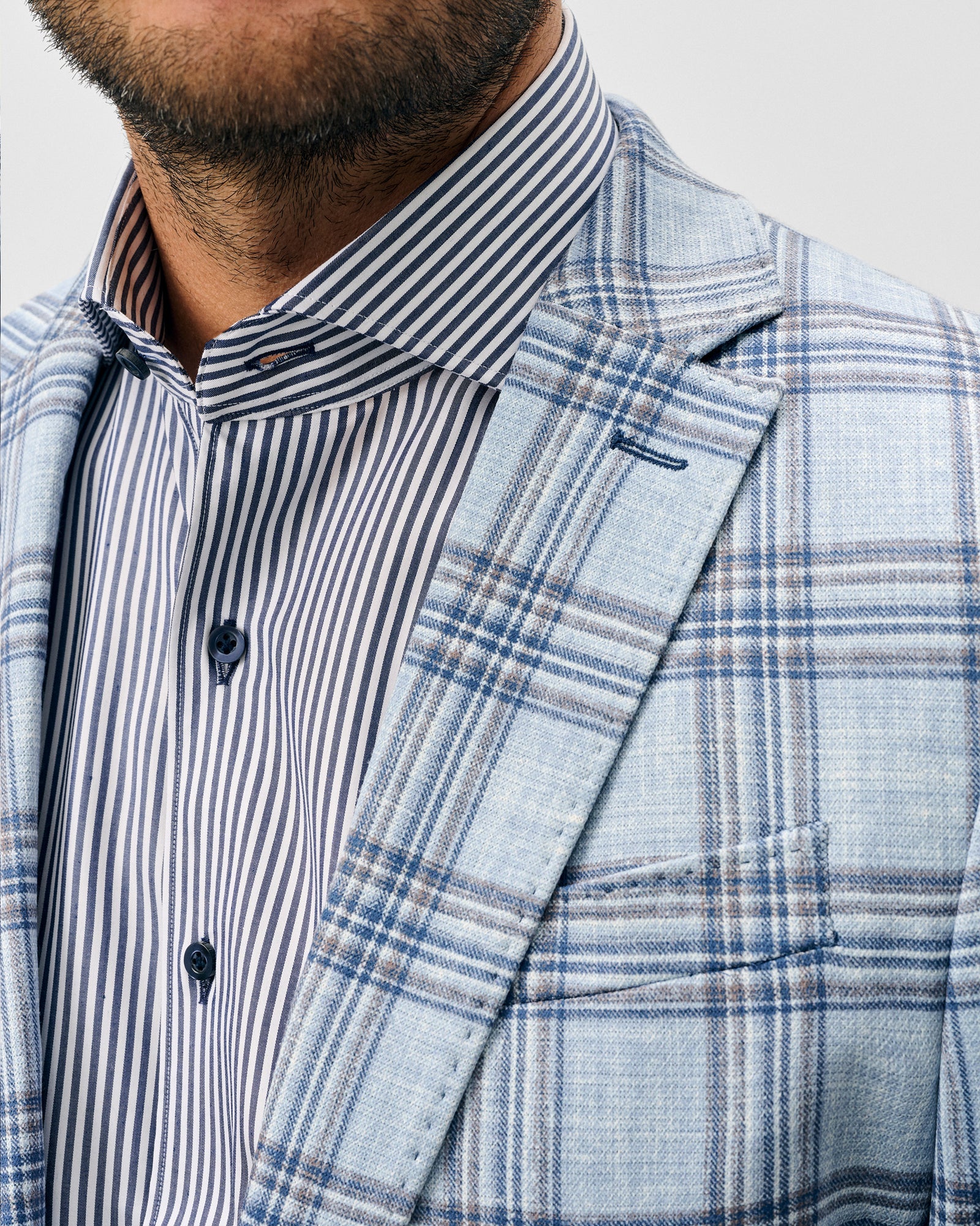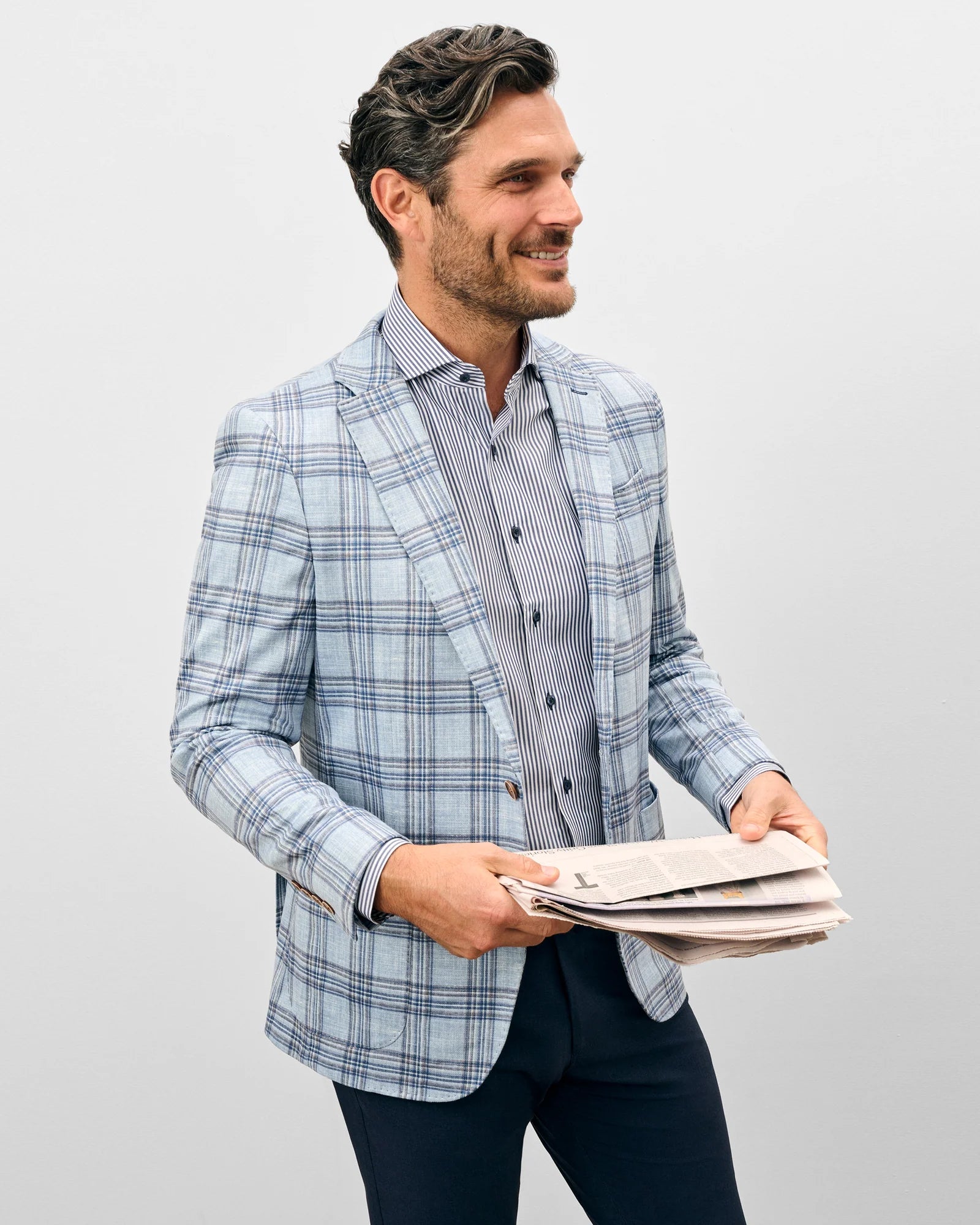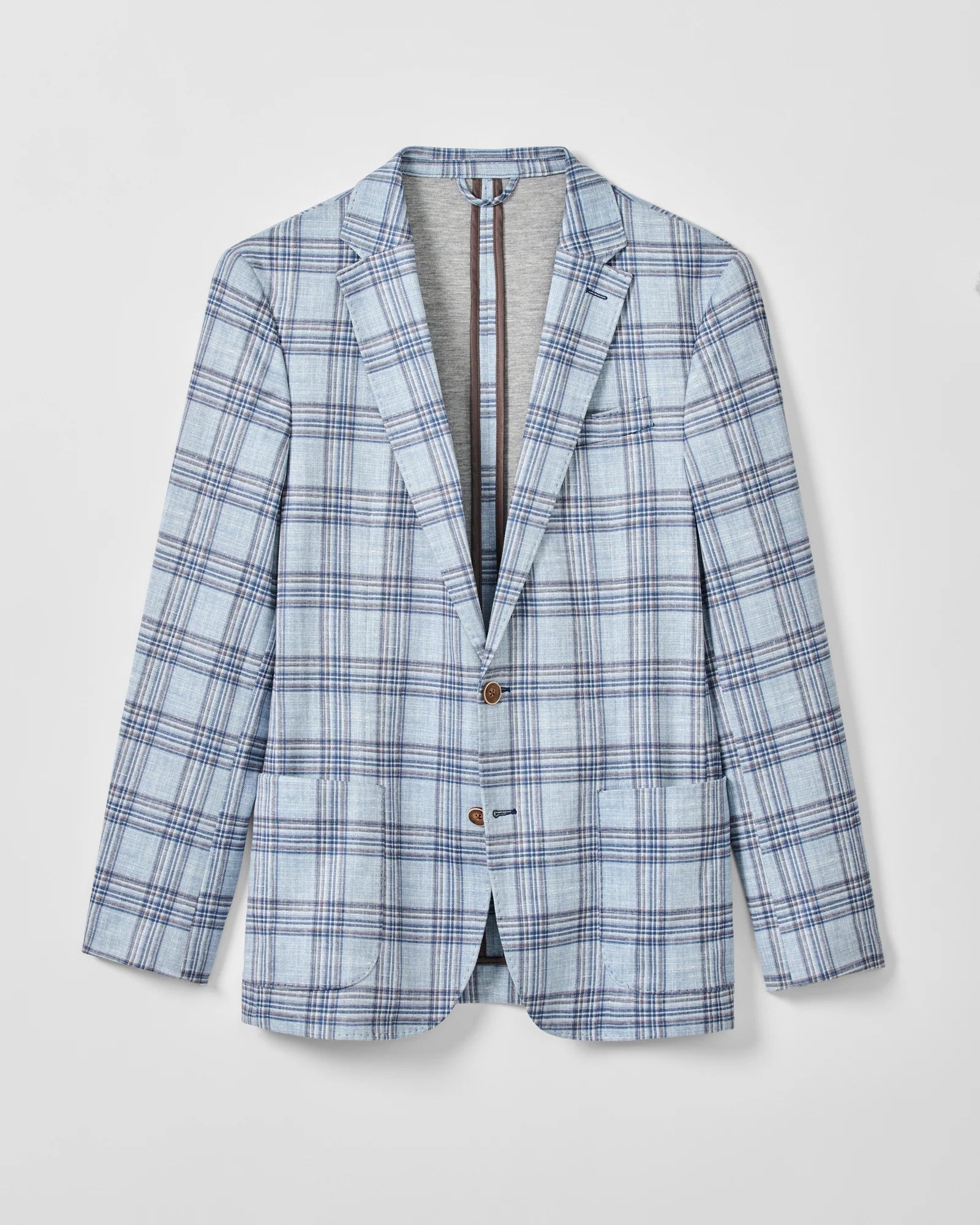 Forget stuffy tailoring—our printed knit sport coats bring menswear into the real world. Crafted from soft, stretchy fabric that actually moves with you, they deliver our signature Johnnie-O fit: sharp and polished without the squeeze. The natural drape and bold plaid print transform a timeless silhouette into something with genuine personality. Classic never felt this comfortable.