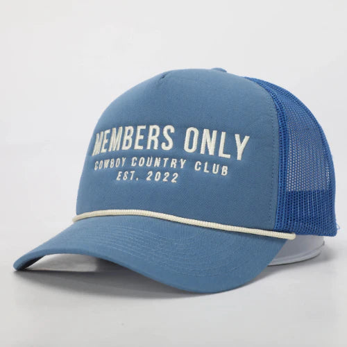 Stand out from the crowd in the Cowboy Trucker Hat from Cowboy Country Club. This exclusive roped hat combines the classic trucker style with a vibrant golf-inspired design. Make a statement with this playful and eye-catching accessory!