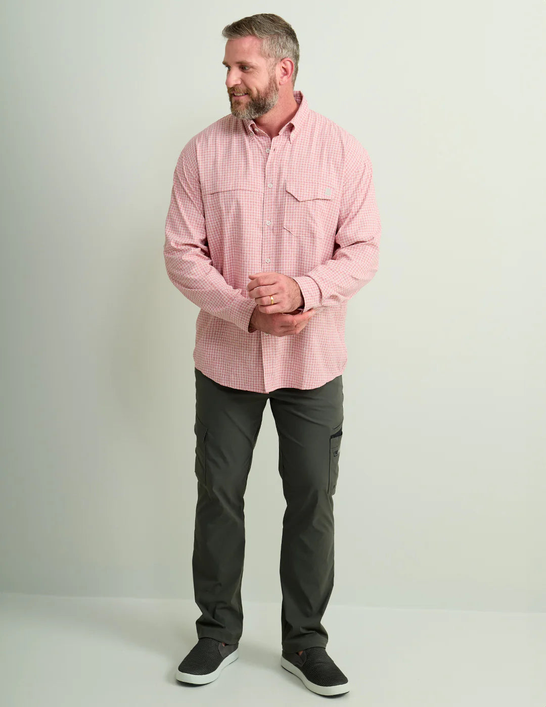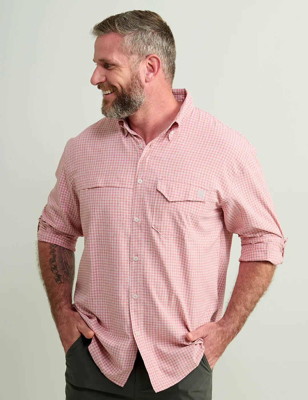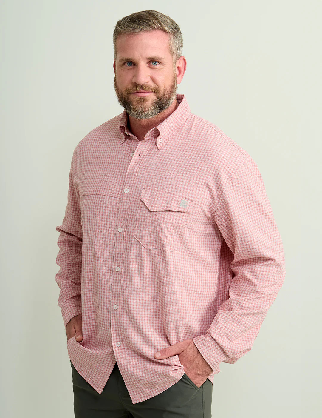 Take on the tide with Huk's Men's Minicheck Tide Point Break Long Sleeve Shirt. Enjoy all-day comfort and durability on and off the water with mechanical stretch, quick-drying fabric, and 30+ UPF protection. Plus, the added features like a mesh-backed pocket and interior wipe make it a must-have garment!