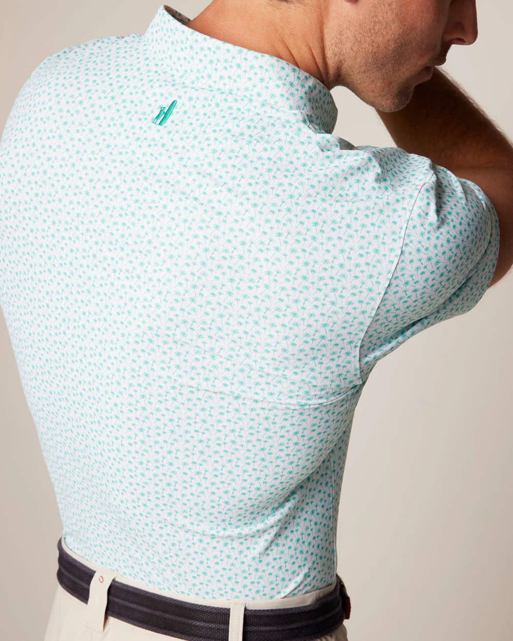 Get ready to elevate your golf game with the Johnnie-O Kailua Printed Performance Polo. Made with performance fabric, this updated version of your favorite mesh polo allows for added mobility on the course. The unbeatable polo fit is accented with a playful palm tree print for a touch of Hawaiian flair.