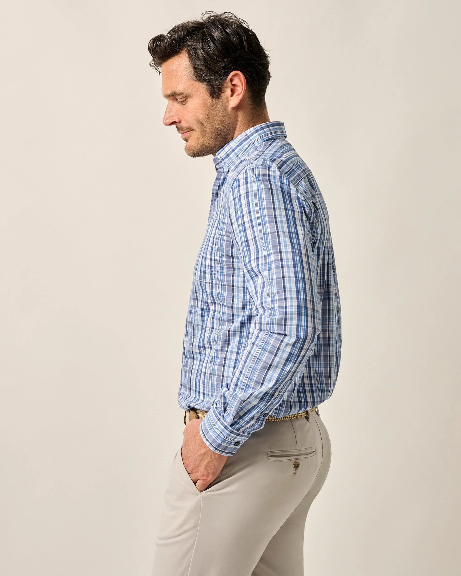 Upgrade your button-up game with the Johnnie-O Men's Masson Natural Performance Button Down. Made with a cotton and nylon blend, it stretches, wicks moisture, and has a hidden button-down collar. With unique details like goosefoot and shanked buttons, plus our signature Tweener Button®, this is one seriously cool shirt.