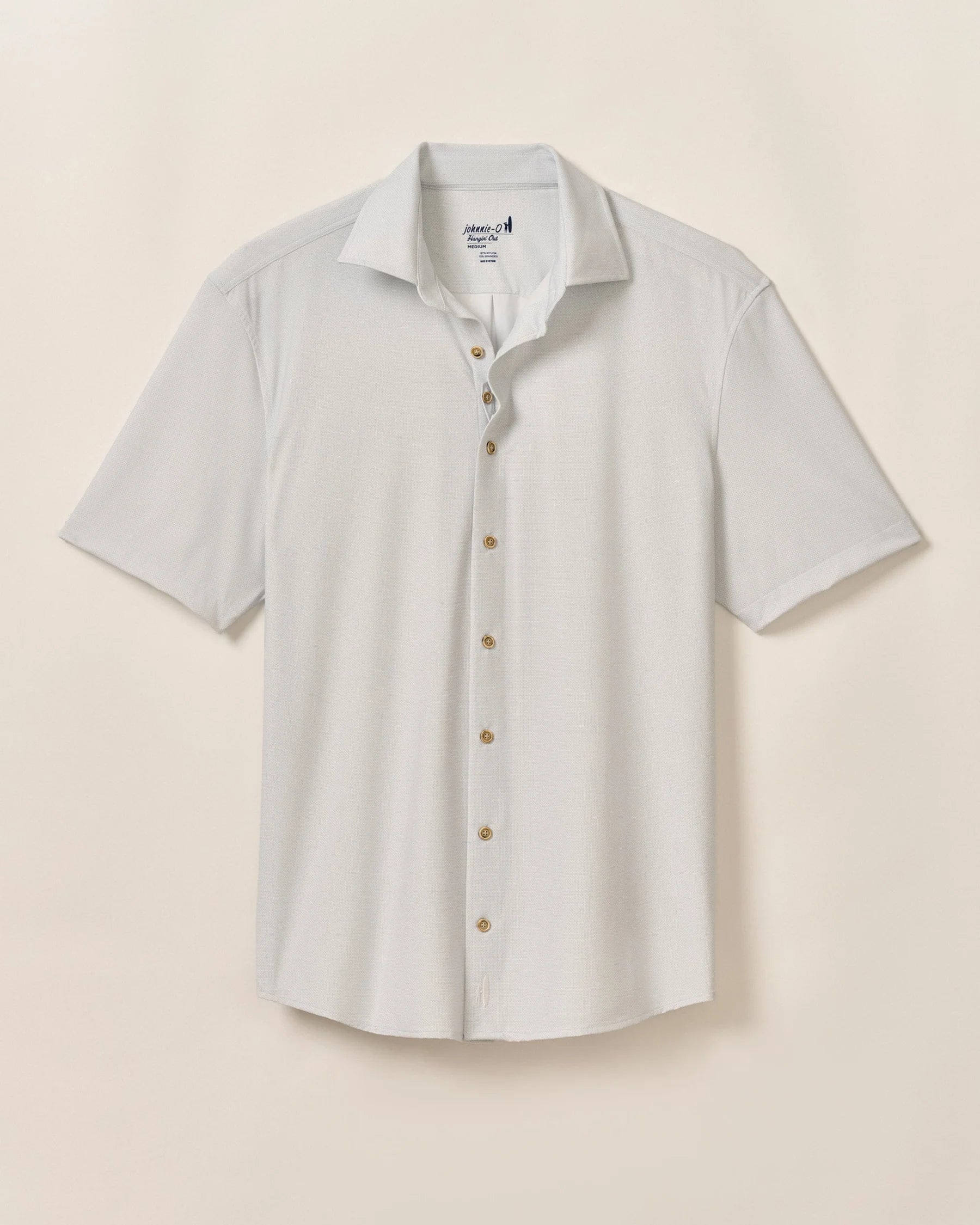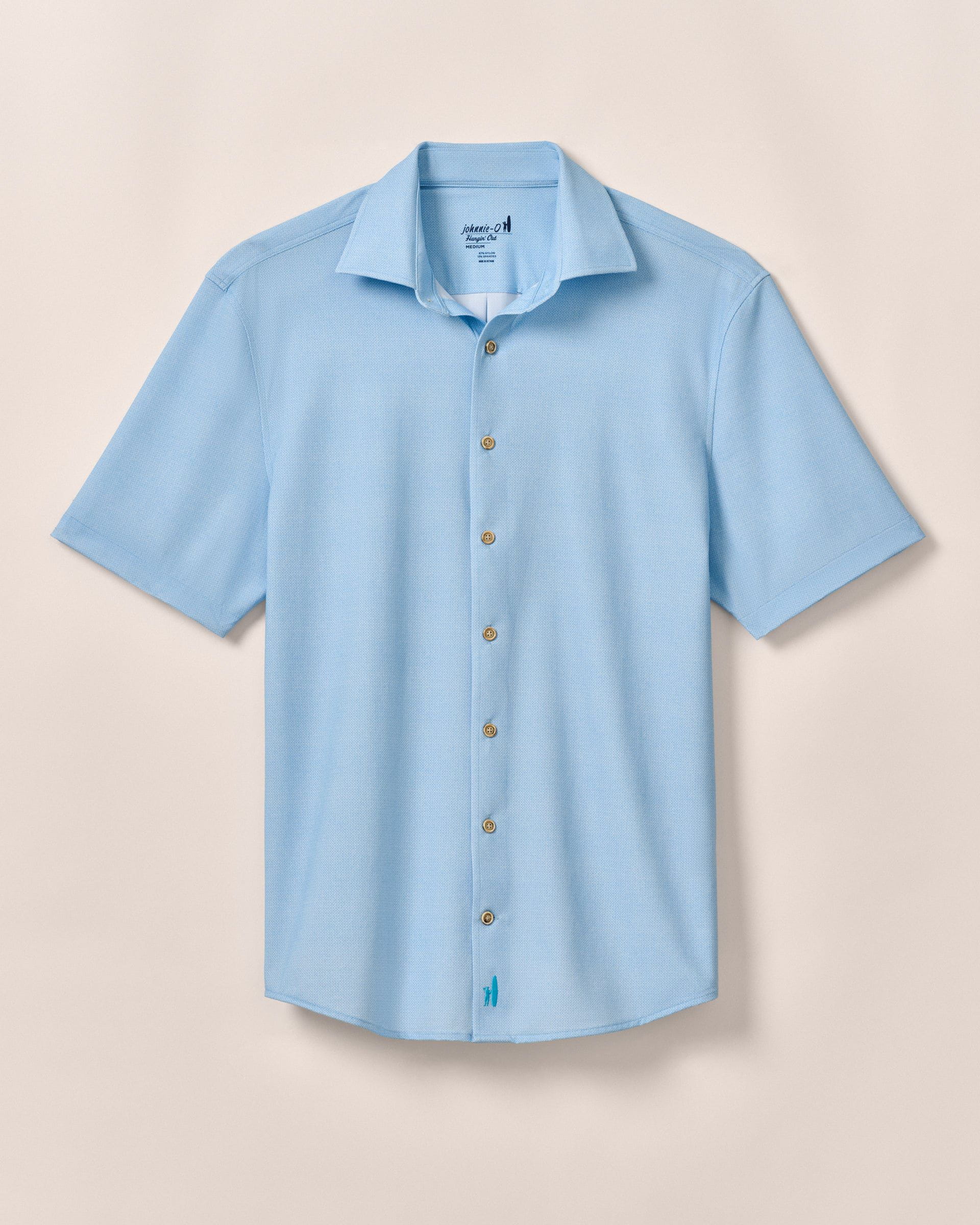 Stay comfortable in style with this Johnnie-O knit button-up from the Hangin' Out Collection. Made with a soft and breathable blend of nylon and spandex, this shirt is perfect for achieving elevated casual looks without sacrificing comfort. Perfect for wearing untucked. (No discomfort, all style!)