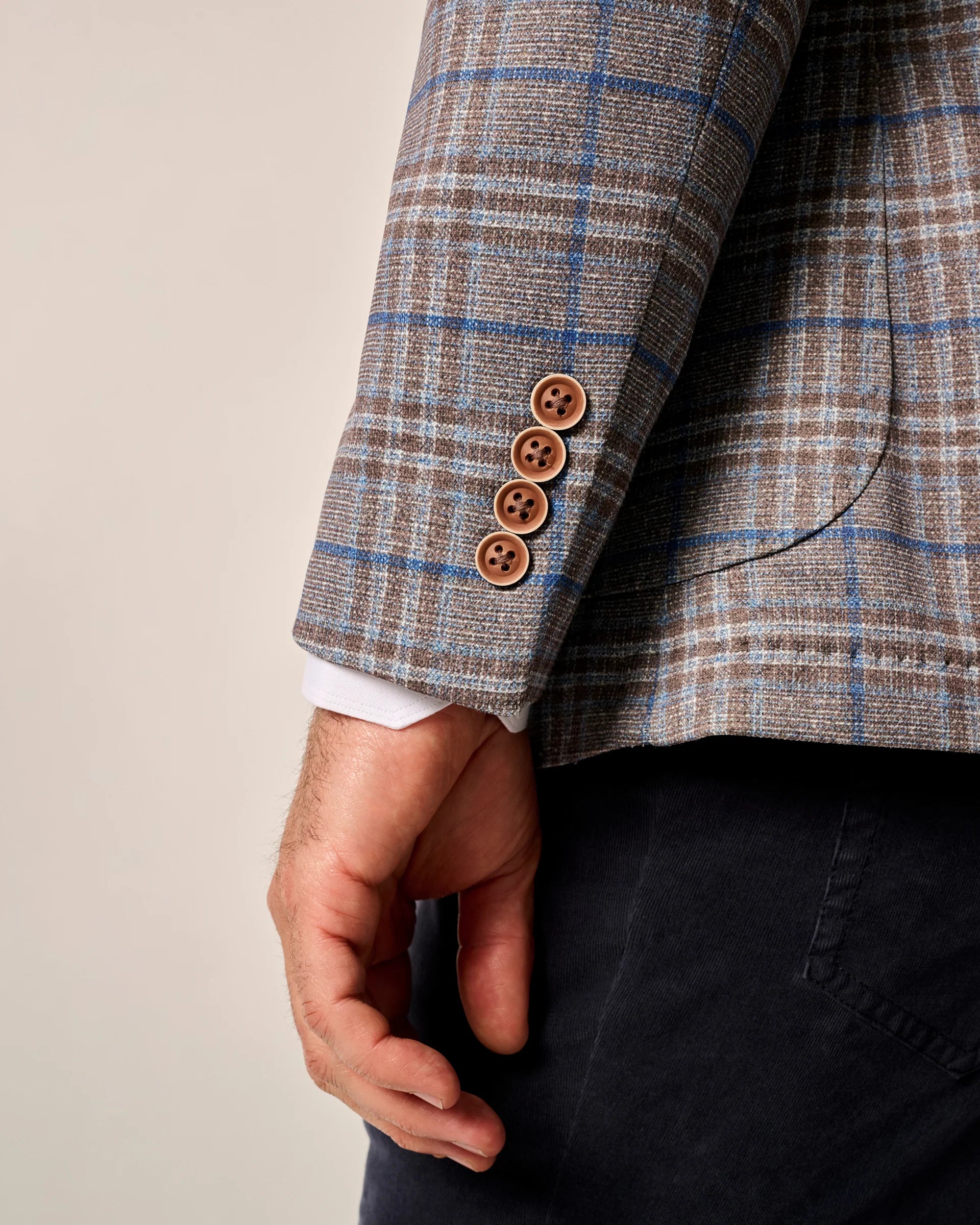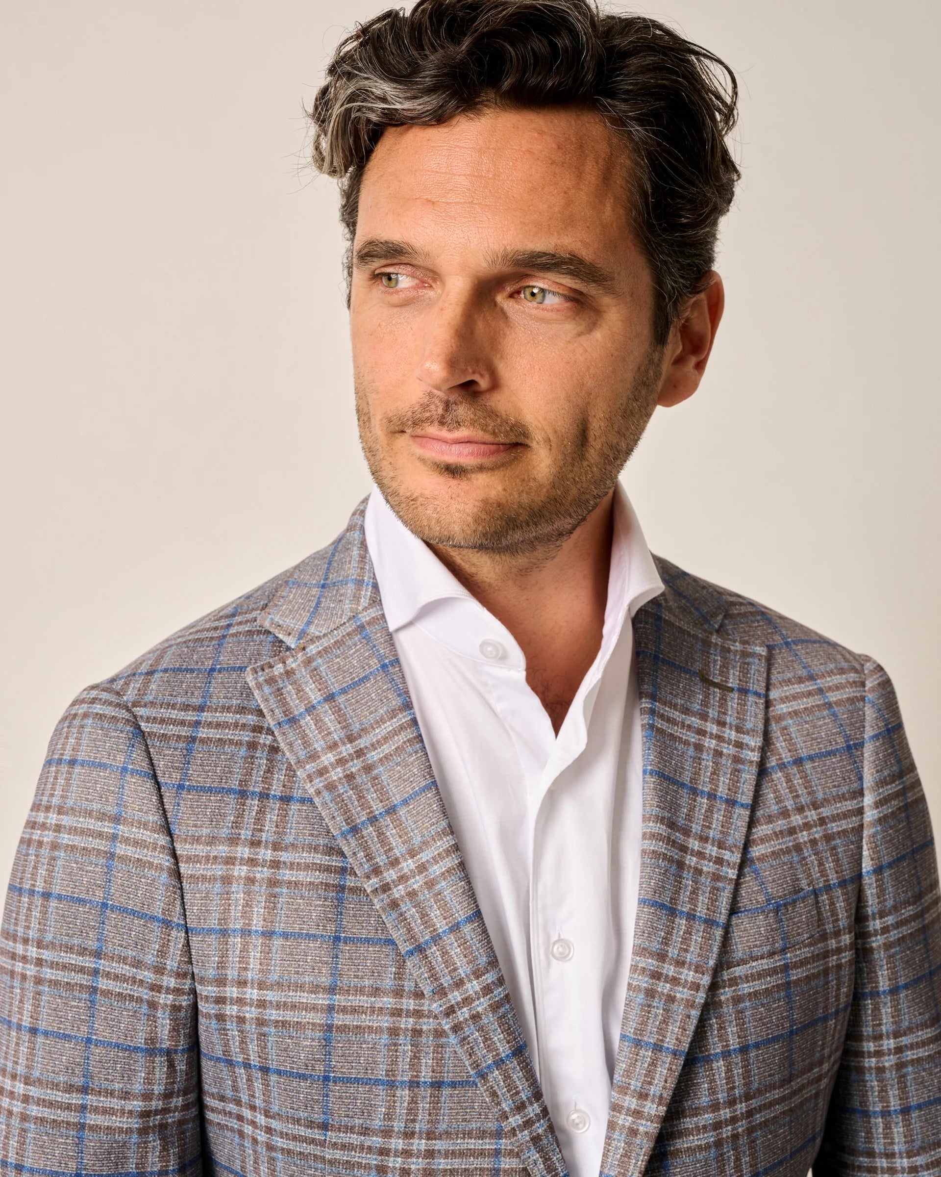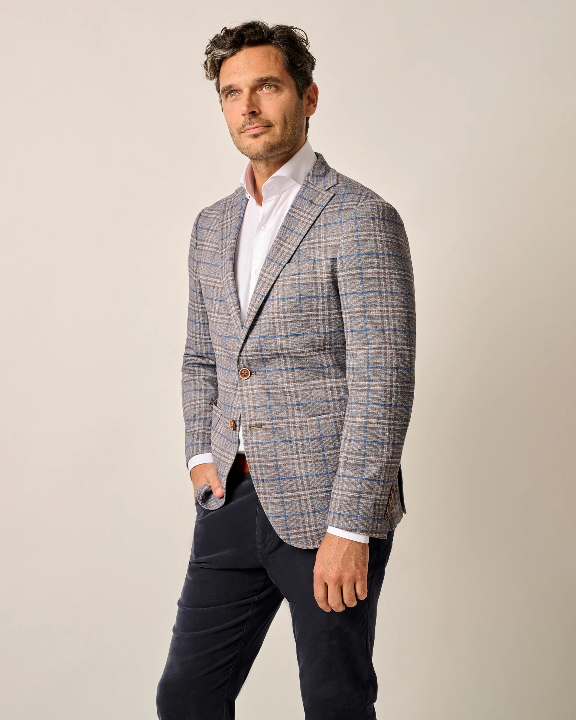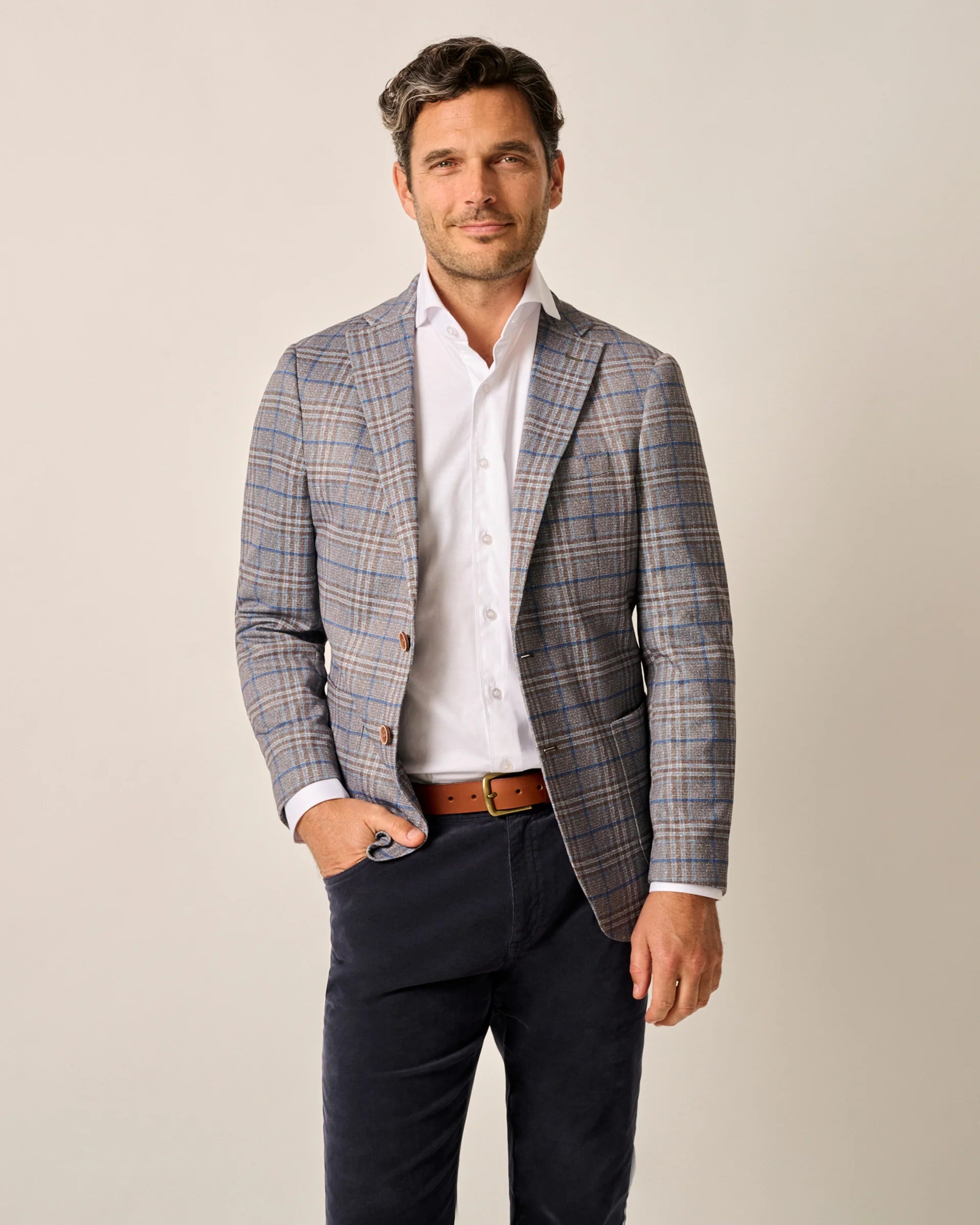 Introducing the Johnnie-O Thurgood Knit Sport Coat, embodying the Italian philosophy of "sprezzatura" with a touch of "barchetta" style. The soft, breathable fabric and timeless print exude a laid-back approach to dressing well. Elevate your wardrobe with this quirky, finely-tailored sport coat.
