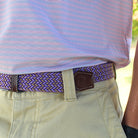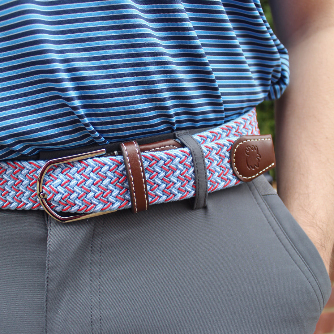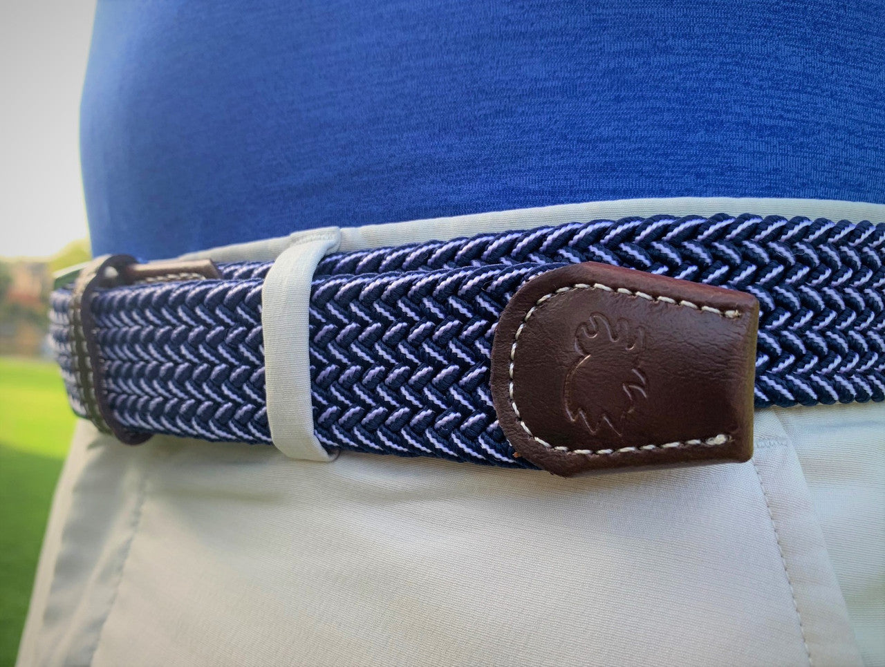 Elevate your everyday style with this Roostas Men's Woven Stretch Belt. Crafted with a premium dark brown leather finish and branded with the iconic Roostas logo, this belt combines durability with distinctive design. The adjustable clasp system slides smoothly through the woven construction, letting you customize the fit to your preference. Built with extra-stretch technology, it moves with you for all-day comfort without sacrificing support. Perfect for casual outings or polished occasions.