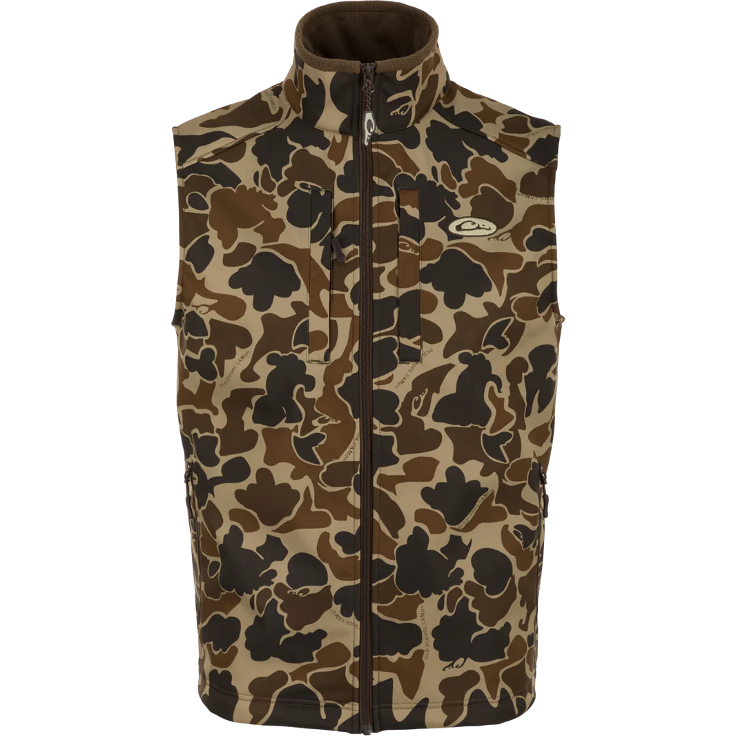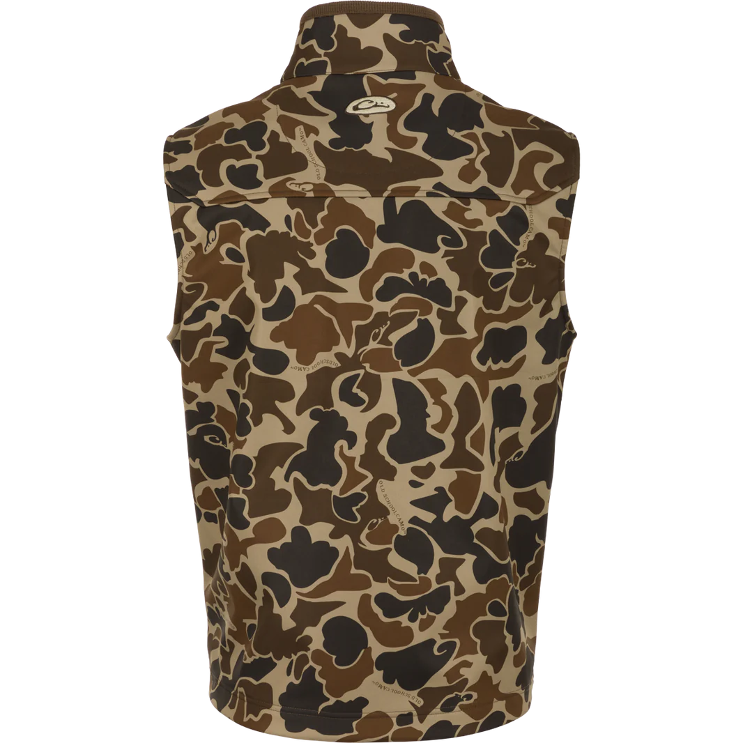 Drake Men's Windproof Softshell Vest is perfect for keeping the wind and cold at bay. Made from 100% polyester with a bonded grid fleece lining, this vest offers maximum protection, comfort, and convenience. Featuring multiple pockets and an adjustable waist drawcord, it's a versatile and stylish choice for any outdoor adventure.
