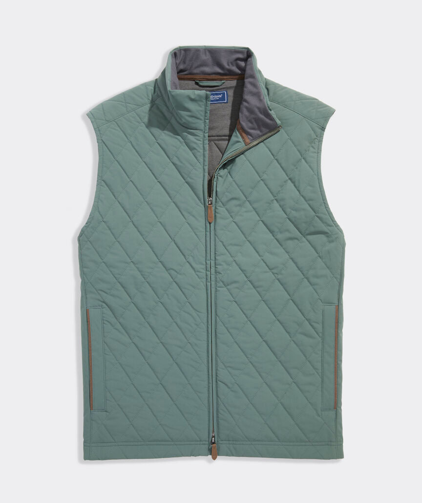 Stay cozy and cool with the Vineyard Vines Men's Dorset Quilted Vest! Designed with soft shell fabric and stretchy quilted insulation, it moves with you while keeping rain at bay. Charming faux-suede details and a fun embroidered whale add a dash of whimsy to your layering game. Perfect for any adventure, this vest is your stylish sidekick through every season.