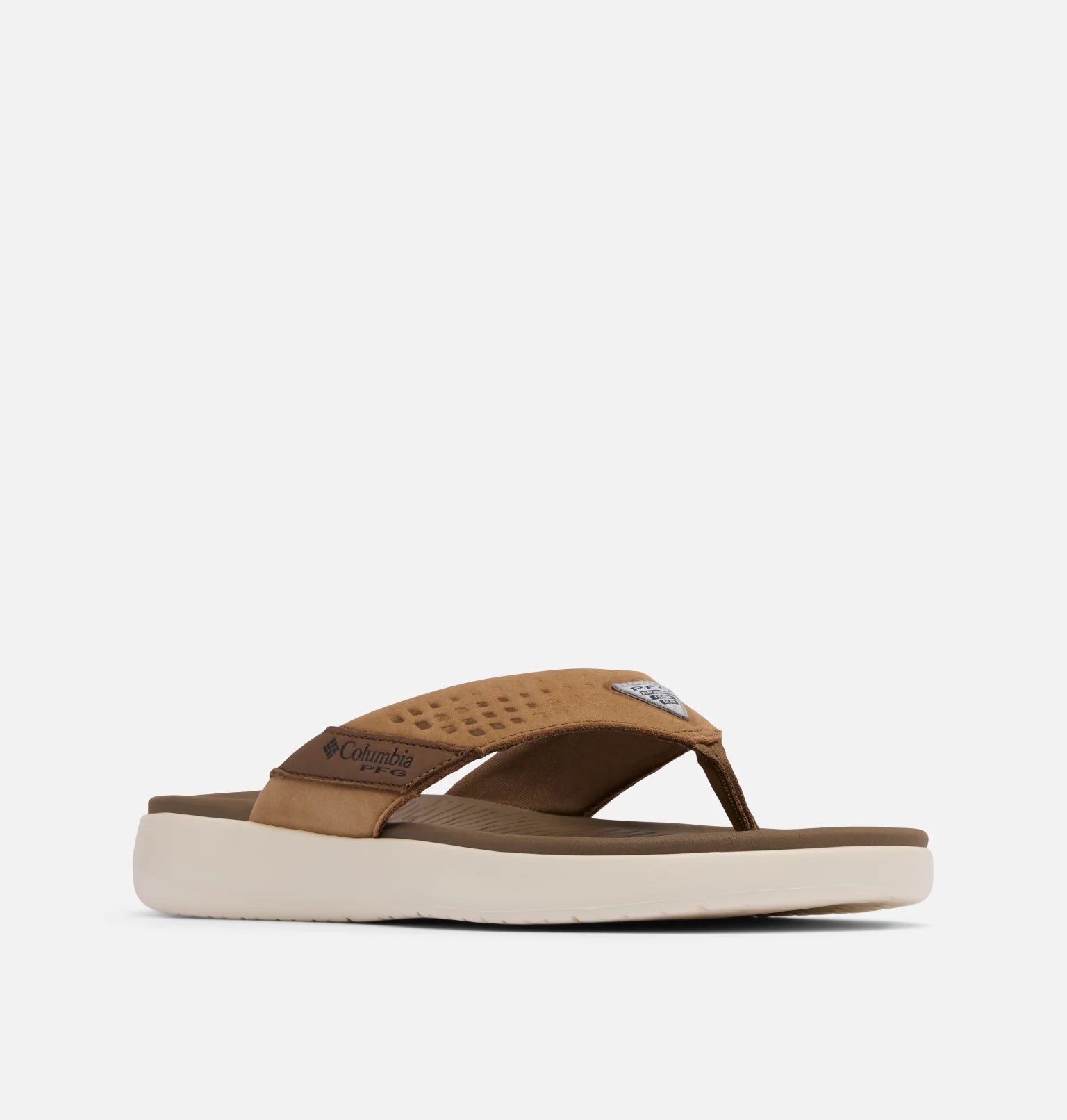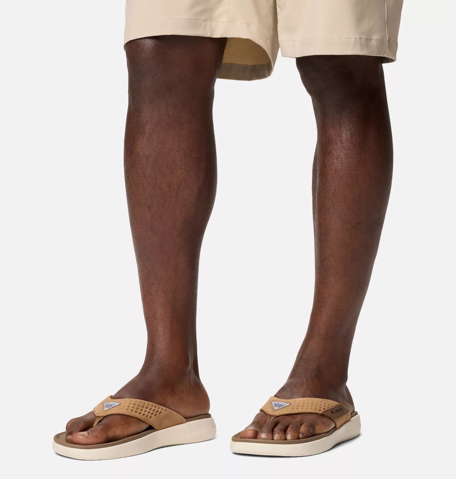 Get ready to set sail in style with the Columbia Men's Boatside Leather Flip Flop. These flip flops feature a durable full-grain leather upper for a sleek and classic look. But don't let that fool you - these flip flops also provide all grip and no slip, ensuring you stay steady on deck and on the boat. Lightweight and with enhanced traction, these flip flops are the perfect companion for any boating adventure. Bring on the waves!