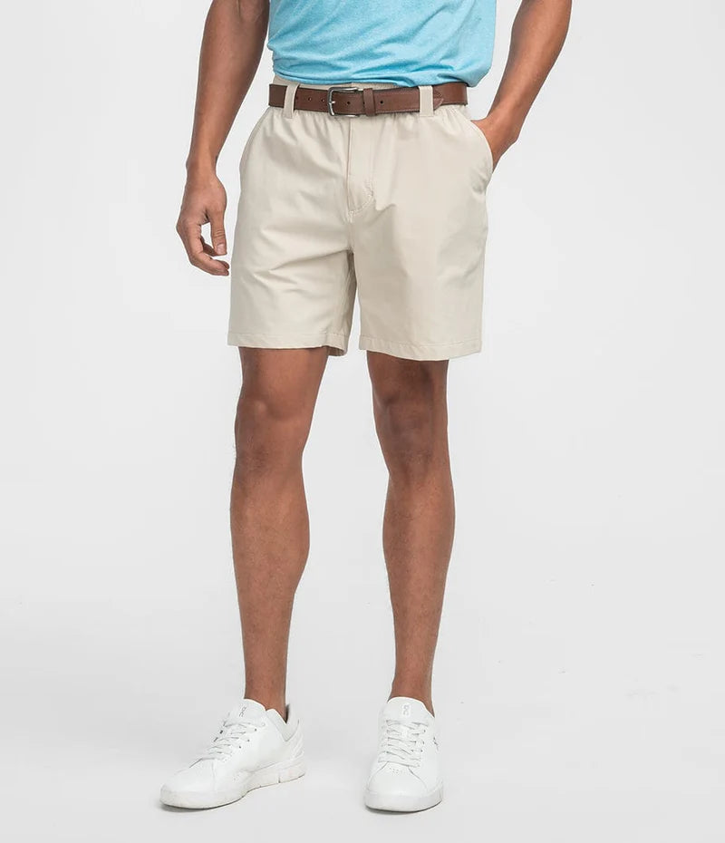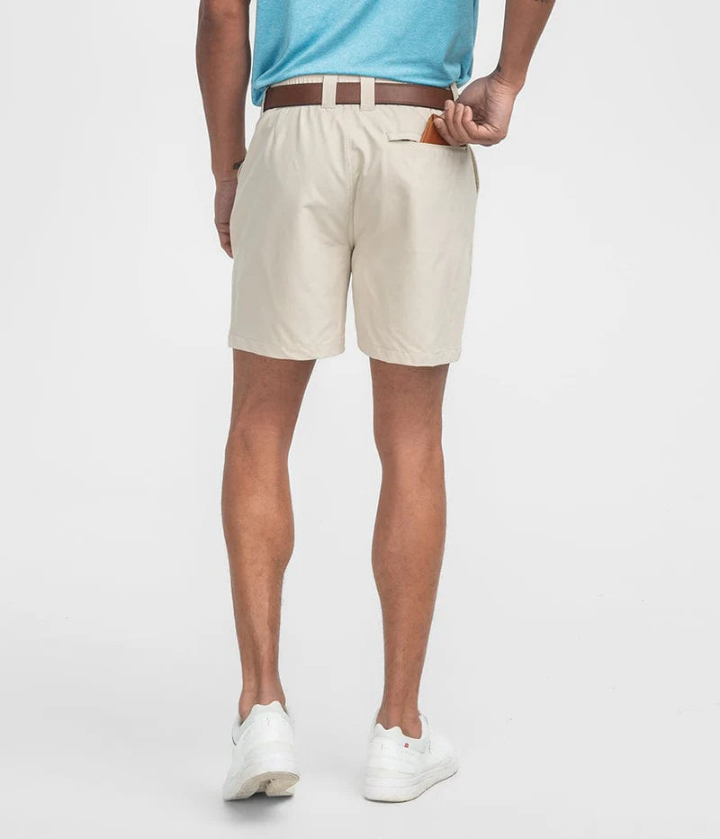 The Nomad Short- a versatile and packable option for any active man. With all-way stretch, it fits comfortable for all-day wear and transitions effortlessly from day to night. Rock it like Mercer, 6'1" in a medium.