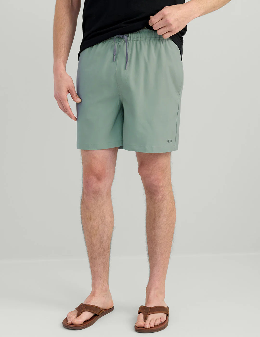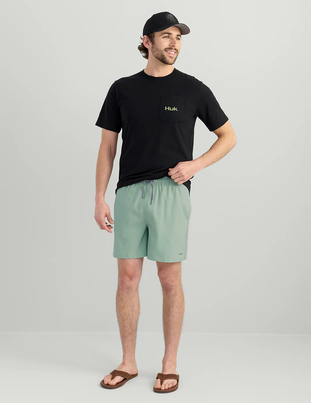 Dive into action with the Huk Volley Short. Its versatile design is perfect for both land and water activities, offering an elastic waistband, internal drawcords, and mesh-lined pockets for convenience. Made with quick-drying SPF-rated fabric, this short ensures you stay comfortable and protected while you play.