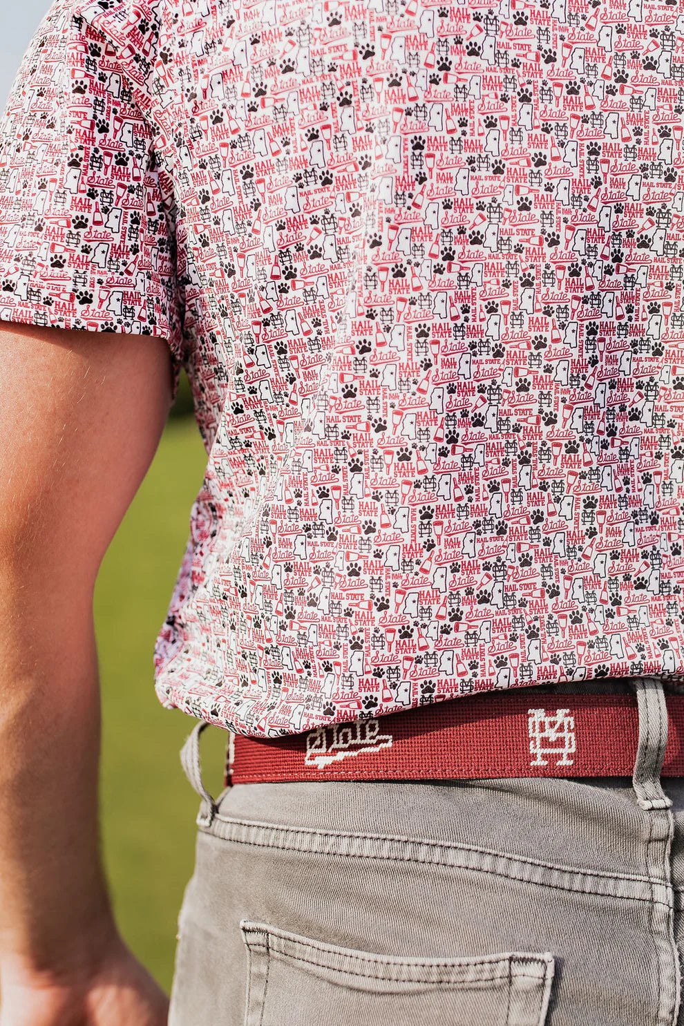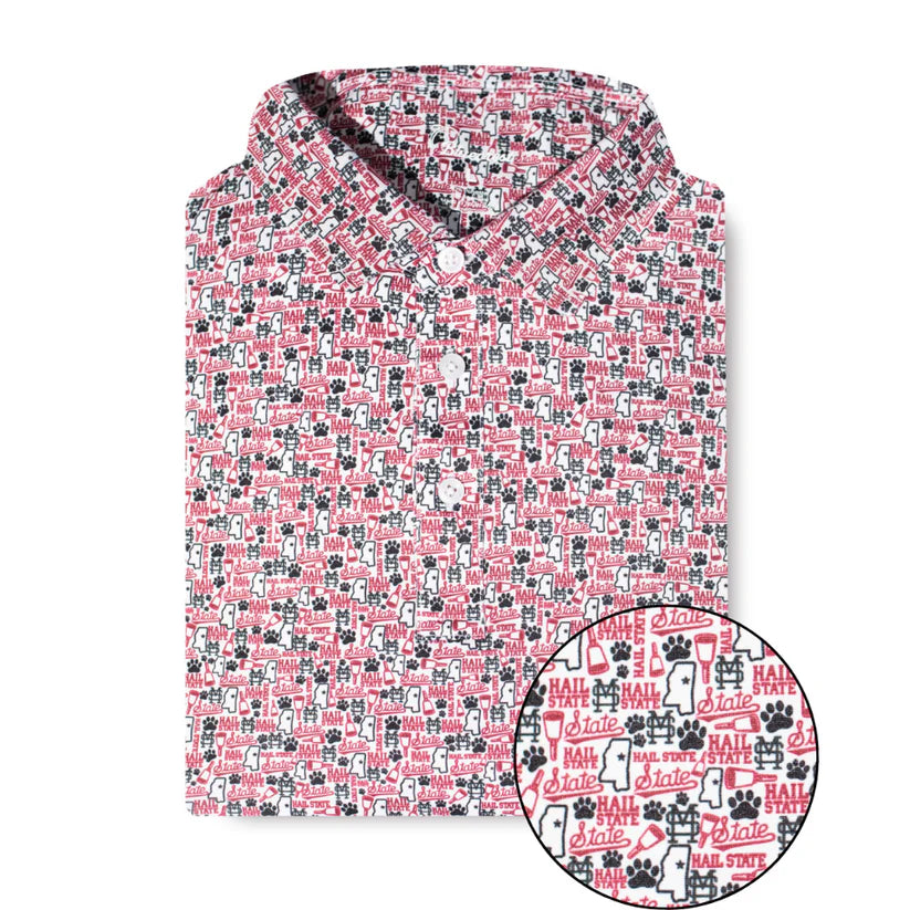 Show your Bulldog pride with the Bluecrest Men's MSU Logo Splatter Performance Polo. This playful polo features a bold splatter design in Mississippi State colors, combining style with lightweight, breathable fabric that keeps you cool and dry. Its athletic fit and official MSU branding make it perfect for tailgates, game days, or casual wear. Stand out and cheer loud—Hail State!