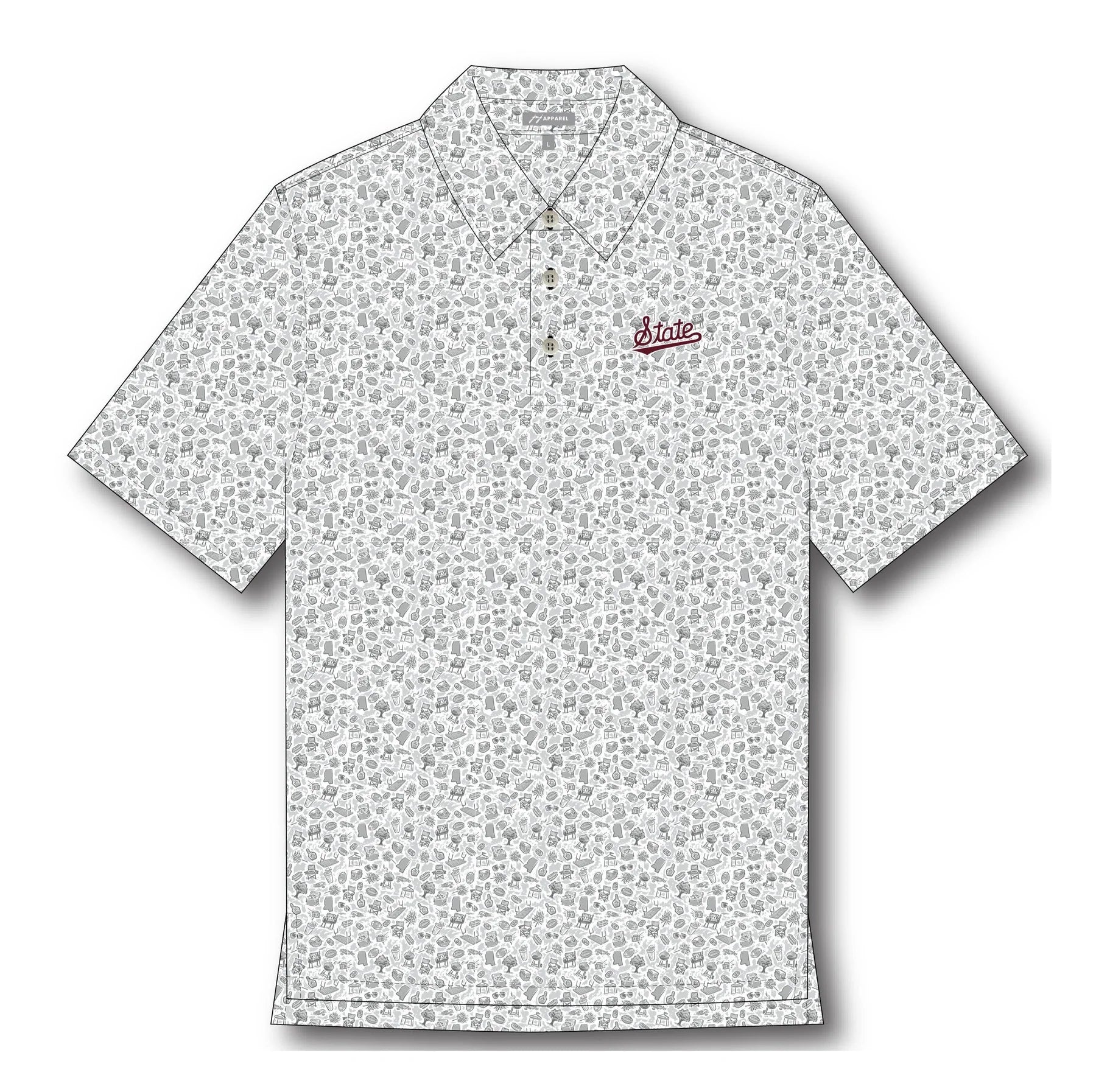 Cheer on Mississippi State in style with the JnJ Script State Tailgate Performance Polo! Featuring a fun, sketch-inspired gameday print in grey and white, this polo keeps you cool and comfy with moisture-wicking fabric perfect for those hot Southern days. The embroidered “Script State” logo adds a classic touch, while the reinforced collar and shell buttons keep your look sharp no matter the celebration. Made by fans for fans, it’s your new go-to shirt for every game and beyond.