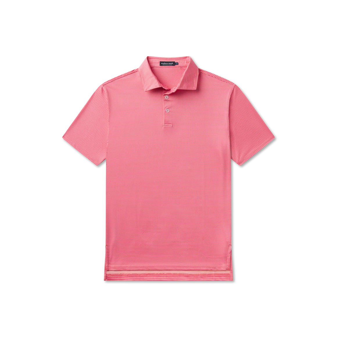 The Walker Performance Polo reimagines a Southern staple with understated sophistication. Its gingham micro-check pattern adds subtle texture while the lightweight, breathable performance fabric keeps you comfortable through long days. The structured collar and tailored fit maintain a polished appearance whether you're on the golf course or heading out casually. Finished with a signature Southern Marsh logo at the back neck, this versatile polo seamlessly transitions from active wear to everyday style.