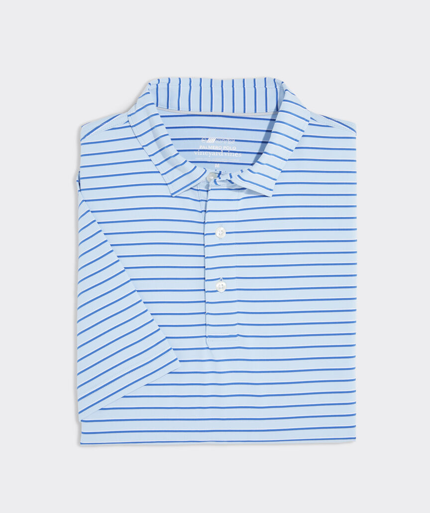 Stay cool and protected in the Vineyard Vines Palmero Polo. Infused with brrr° cooling technology, this performance polo ensures you stay at the optimal temperature while also offering UPF 50 sun protection. Perfect for any outdoor activity!