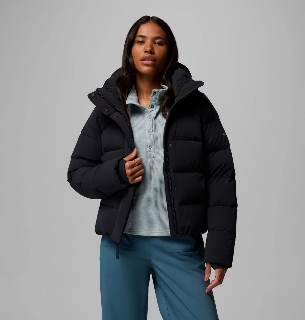 Stay cozy and snug in the Columbia Women's Amaze Puff Hooded Jacket, your go-to for chilly days. With its lofty 650 fill power down and moisture-repelling finish, it keeps you warm and dry no matter the weather. Handy carrying straps make it easy to bring along, while the roomy fit lets you layer up without feeling bulky. Soft to the touch and playful in spirit, this jacket wraps you like a warm hug when winter tries to steal your sunshine.