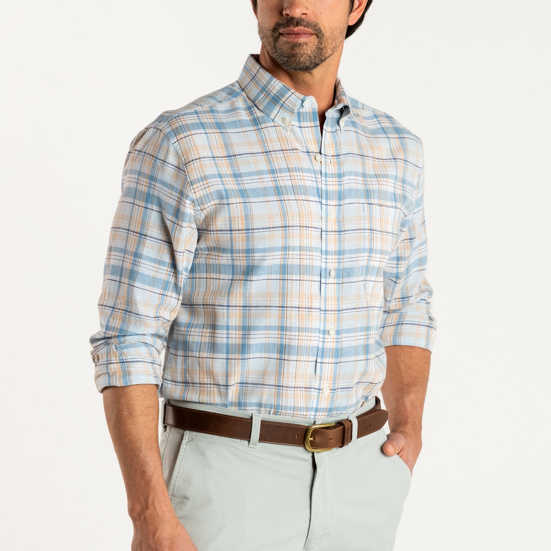Get ready to quack up in style with our Duck head Linen Cotton Oxford Kinston Plaid Shirt! This playful twist on the classic Oxford Cloth Button-Down offers a cool, wrinkle-resistant blend of linen and cotton, with a soft, garment-washed finish. Achieve a polished look with the button-down collar and chest pocket, or embrace a more relaxed vibe by pairing it with our field canvas camp shorts.