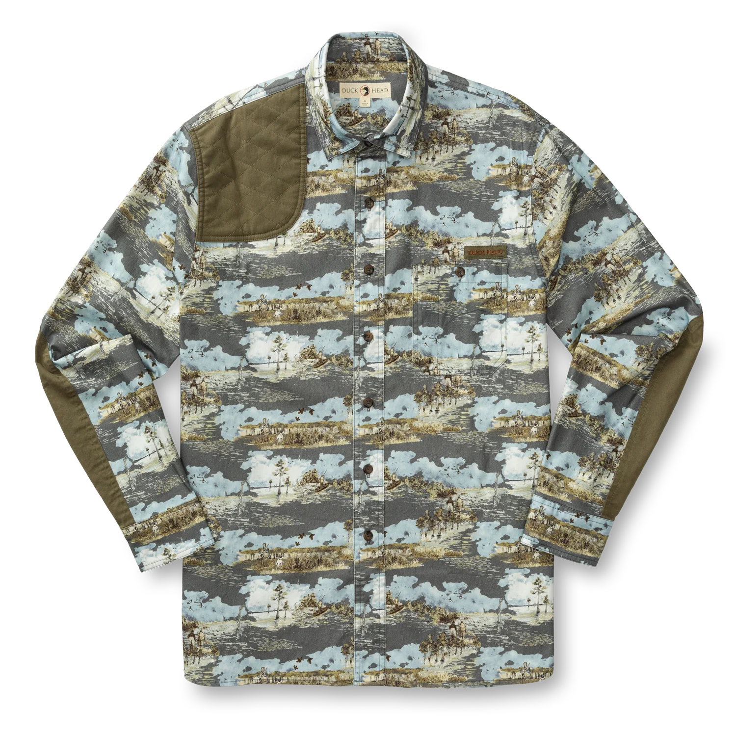 The Duck Head Men's Woodlands Shooting Shirt is your new outdoors companion with a twist of classic charm. Made from stretchy twill, it moves with you, while quilted shoulders and reinforced forearms handle the rough and tumble. Sporting dome horn buttons and a sharp embroidered logo, this shirt blends heritage style with ready-for-action comfort—perfect for the field or just showing off your adventurous spirit.
