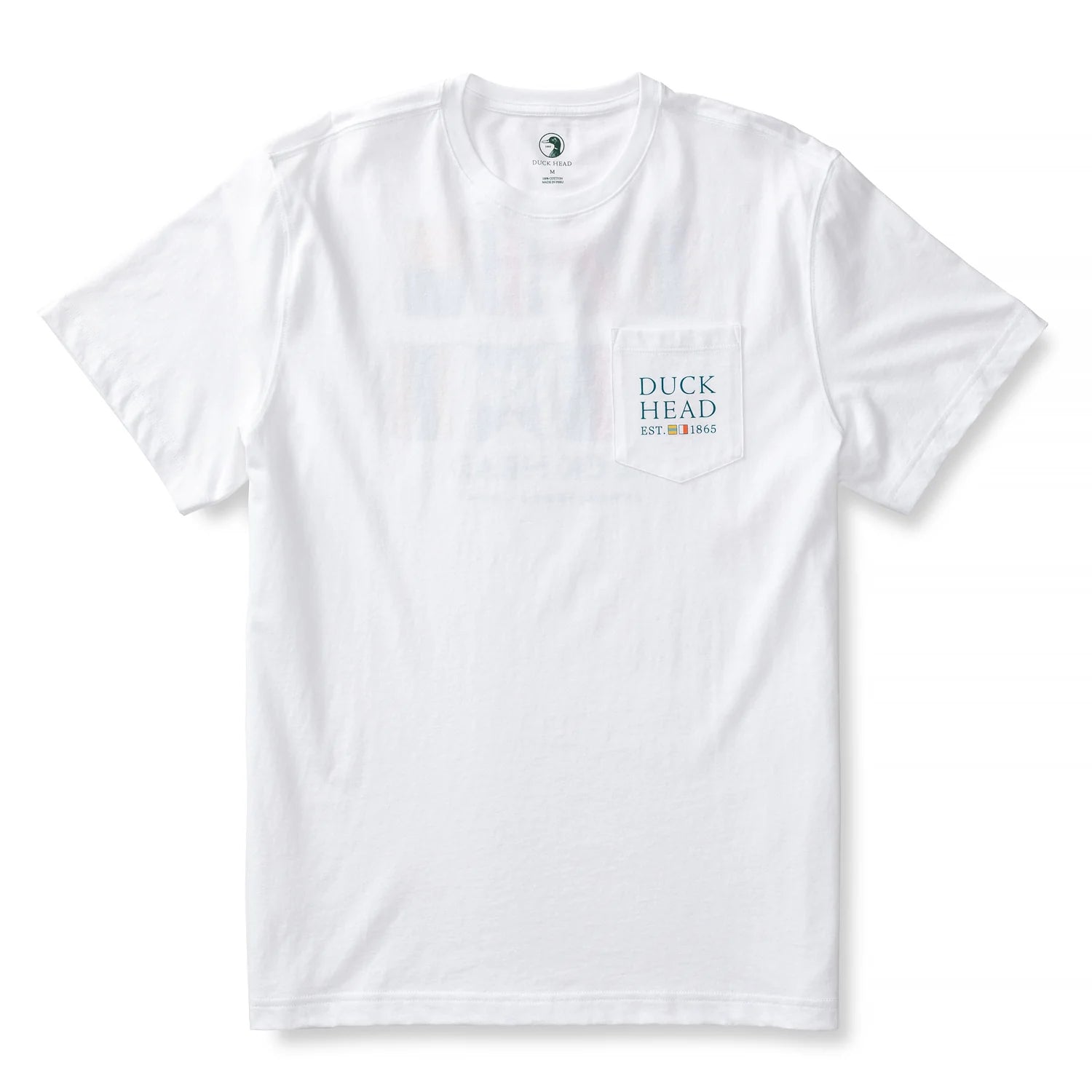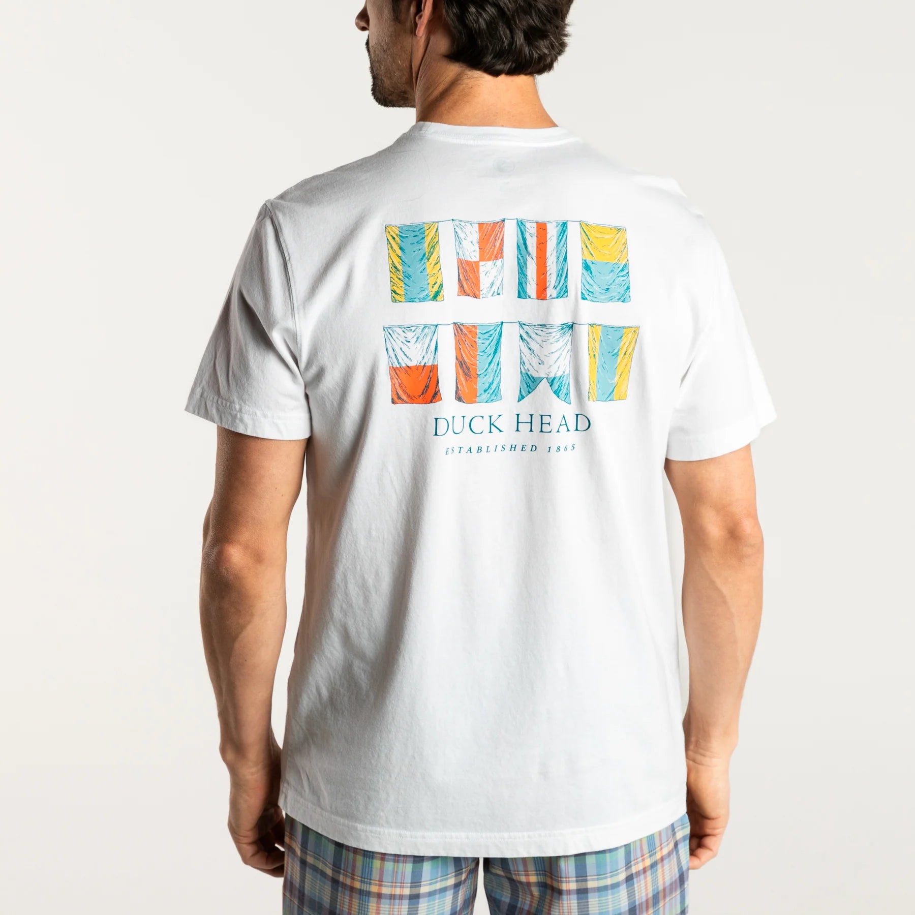 Take a trip to the coast in style with the Duck Head Nautical Flags short sleeve tee. Unwind in comfort as you decipher the flags on the back and recognize your favorite locations. A must-have for any beach lover.