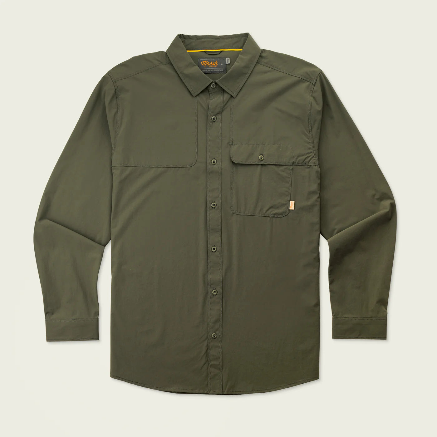 Ready for adventure and looking sharp, the Marsh Wear Men's Big Pine Field Shirt combines tough durability with playful comfort. Its rugged shoulder overlays stand up to outdoor wear, while 4-way stretch fabric moves with you, no matter the day's twists. Perfectly versatile, this shirt slips effortlessly from trail to town—because why choose between function and style when you can have both?