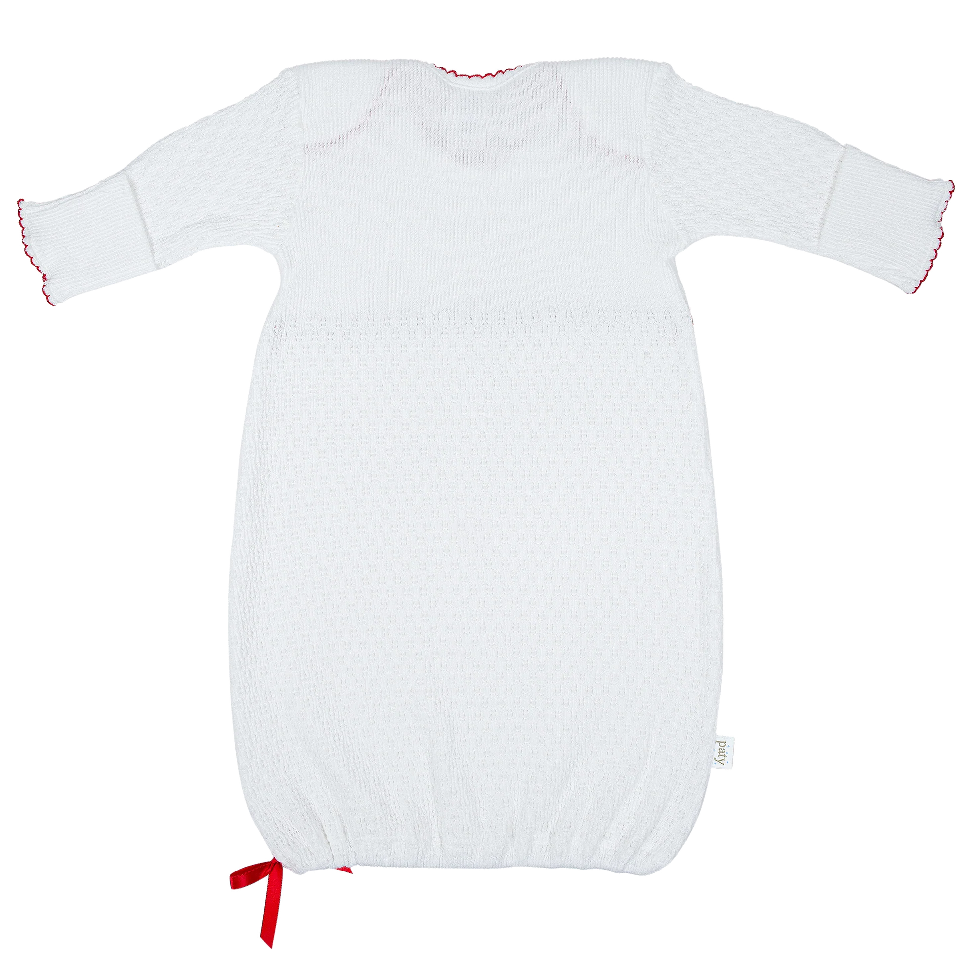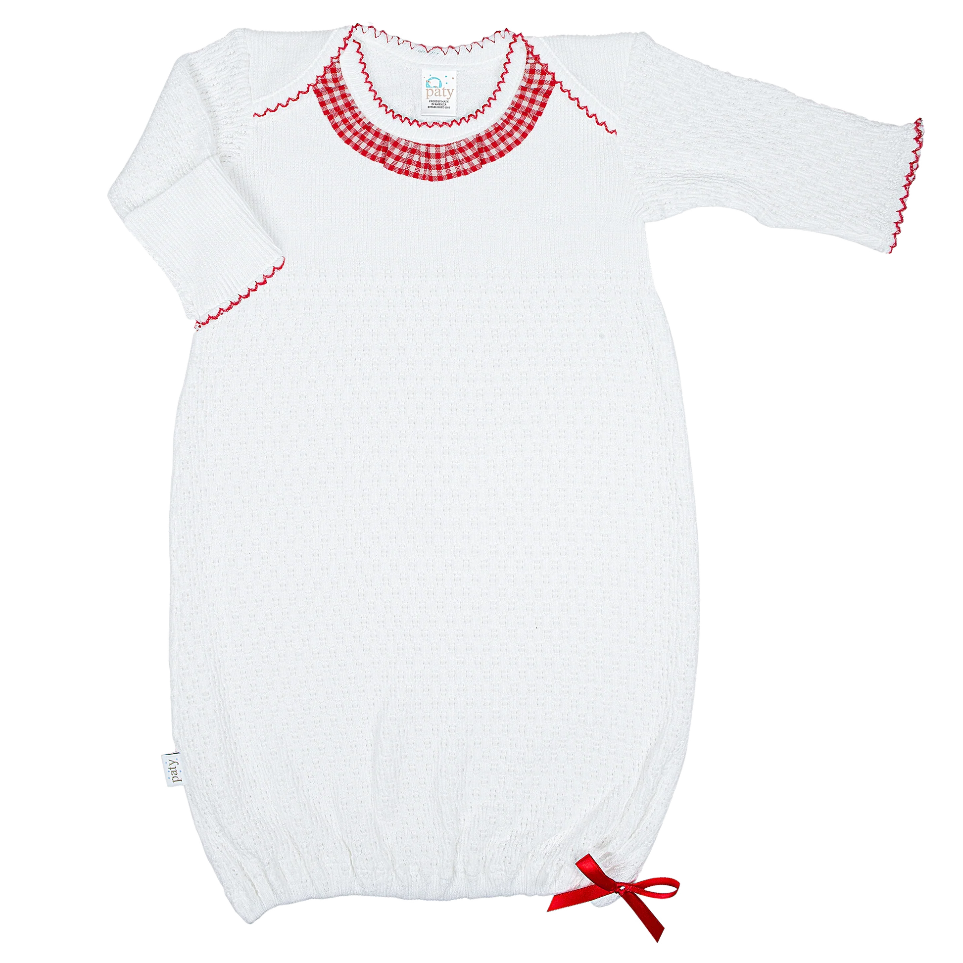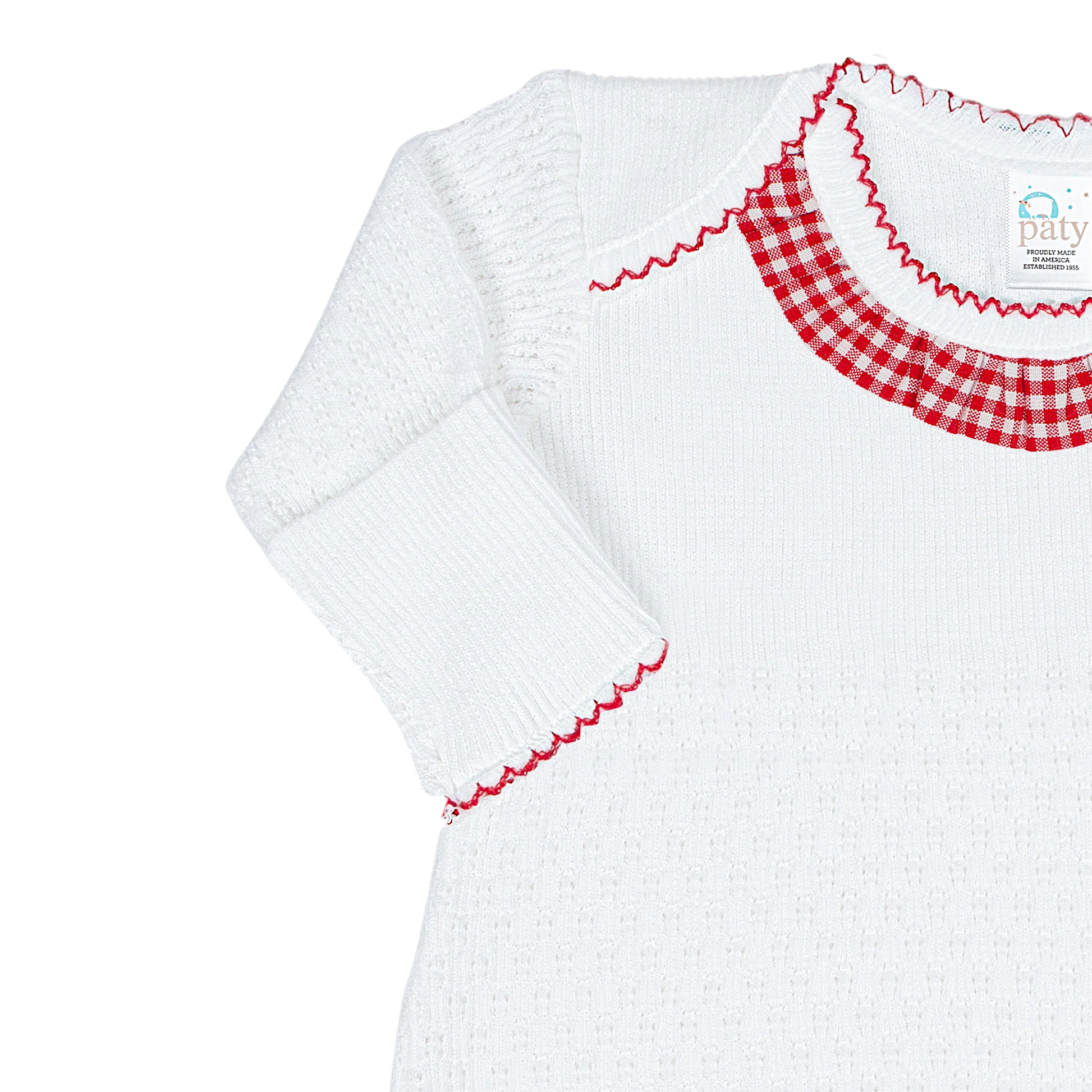 Paty Knit Overlap Shoulder Gown with Gingham Ruffle