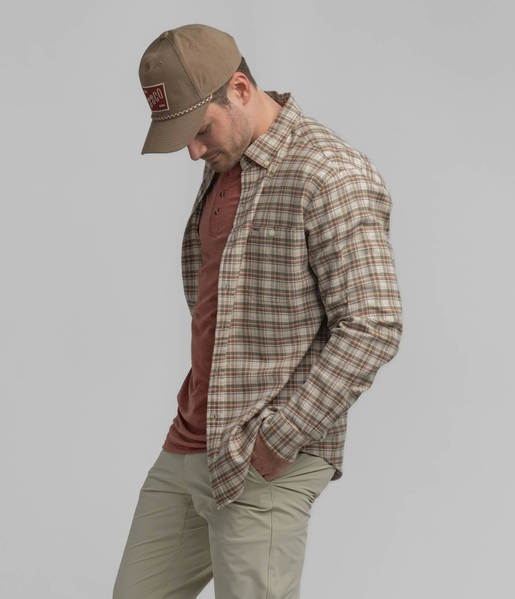 The Dunston Flannel is your go-to for crisp mornings and cozy nights. Crafted from 100% cotton melange heather yarns with a double-brushed finish, it feels broken-in soft from the first wear. The vintage-inspired design pairs a non-boxy, modern fit with practical details—button-down collar, mitered cuffs, chest pocket, and back pleats for easy movement. Embroidered side gussets add a signature touch. Layer it over a tee or wear it solo. Perfect for bonfires, tailgates, and everything in between.