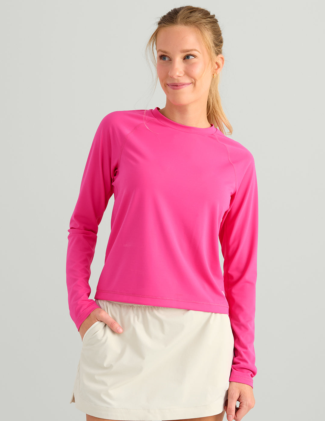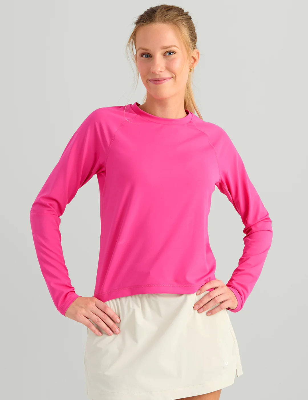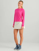 Rise and shine with the Huk Women's Sunup Long Sleeve Crewe Performance Shirt—your new go-to for water days and beyond. This breathable nylon-spandex blend keeps you cool and comfortable with UPF 50 protection, while the stretchy fabric moves with you through every cast and adventure. Raglan sleeves and thumbholes provide practical coverage, and the modern cropped fit looks just as good grabbing coffee as it does on the boat. From sunrise to sunset, Sunup delivers performance without sacrificing style.