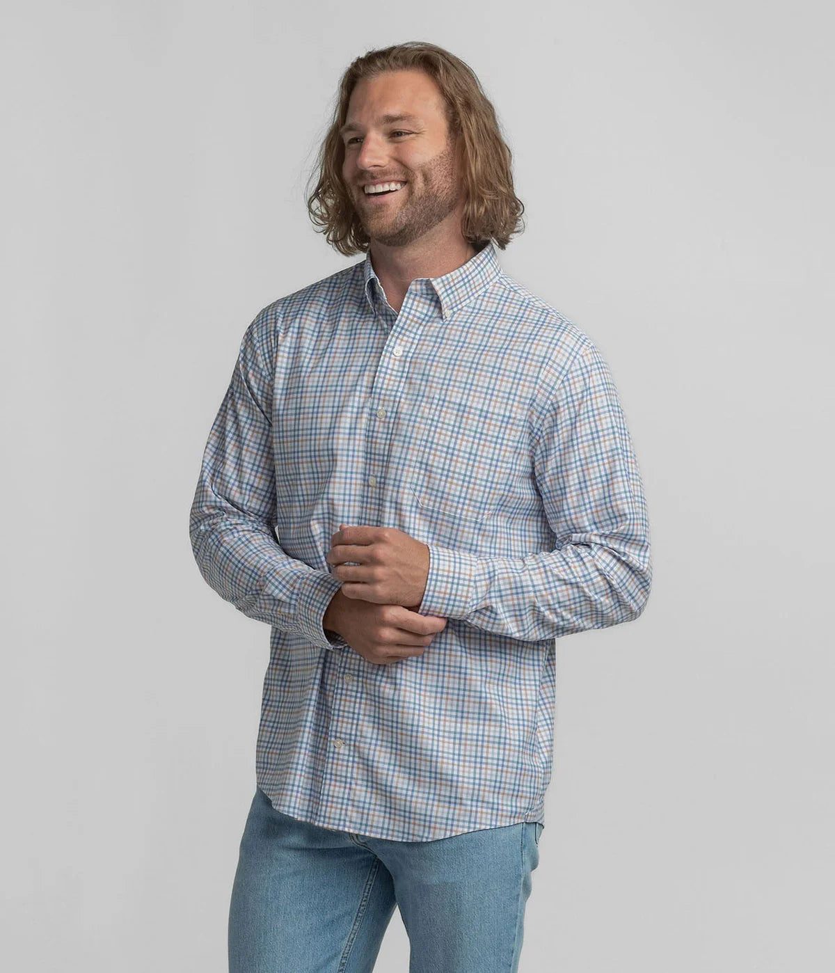 The Samford Check Long Sleeve reinvents the timeless button-down with performance features built for Southern fall weather. Lightweight, breathable, and finished with a silky-soft hand feel, this shirt delivers the polished look of a woven with the comfort of your favorite tee.