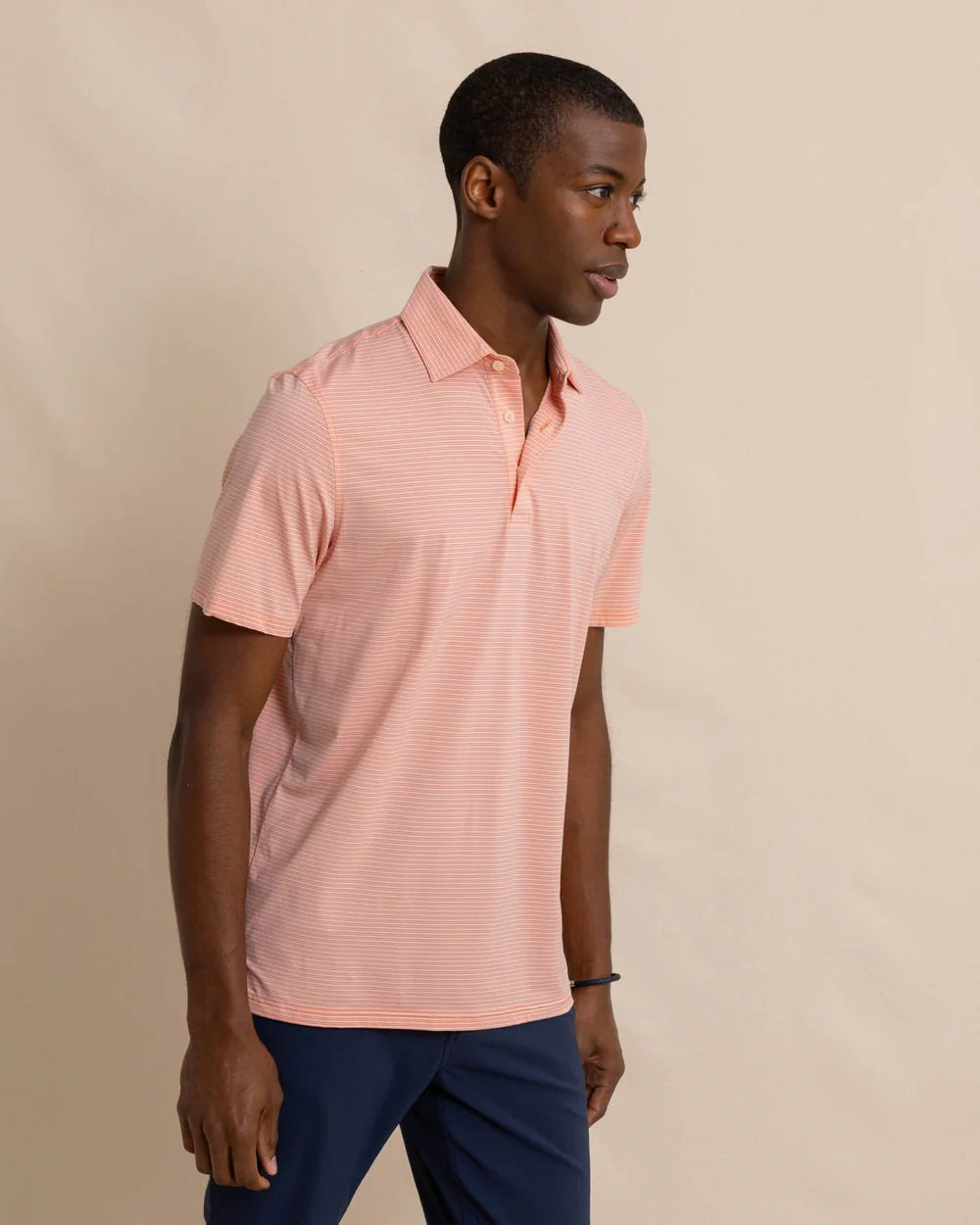 Unleash your timeless style with our Southern Tide Baytop Strip Polo. The contrasting stripes add a sophisticated touch to this versatile polo that's perfect for any occasion. Made with quick-dry material and brrr°® cooling technology, you'll stay comfortable while looking effortlessly stylish. Don't miss out on the classic silhouette and drop-tail hem that make this polo a must-have.