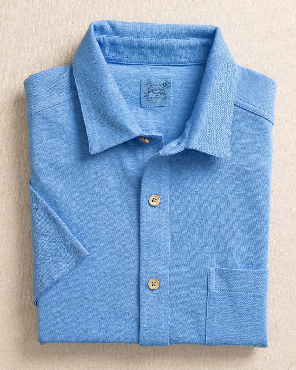 Get ready for a cool and casual look with the Southern Tide Beachcast Knit Sportshirt. With a chest pocket and coconut buttons, this breezy button-down adds a touch of class. Made with soft and breathable cotton, it's the perfect choice for a comfortable day at the beach.