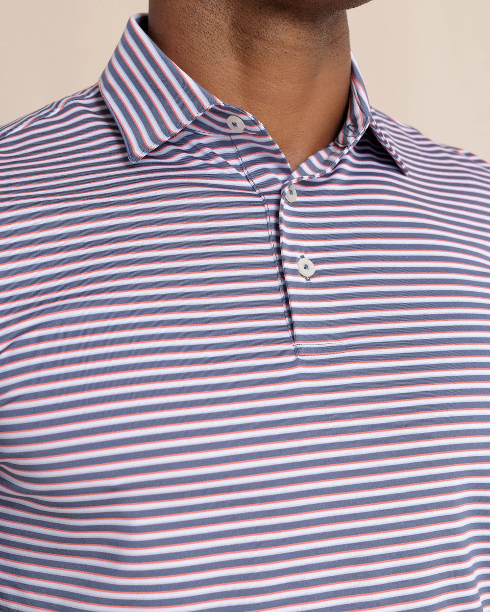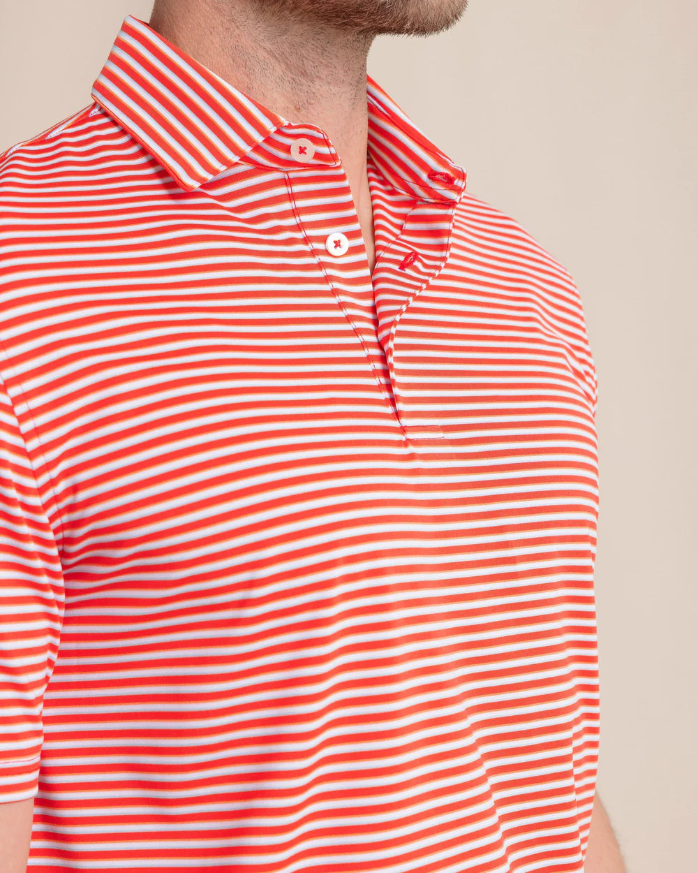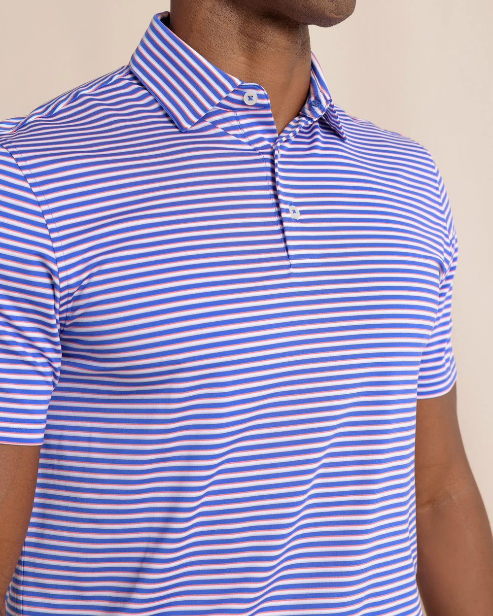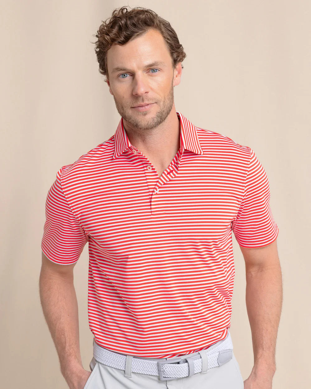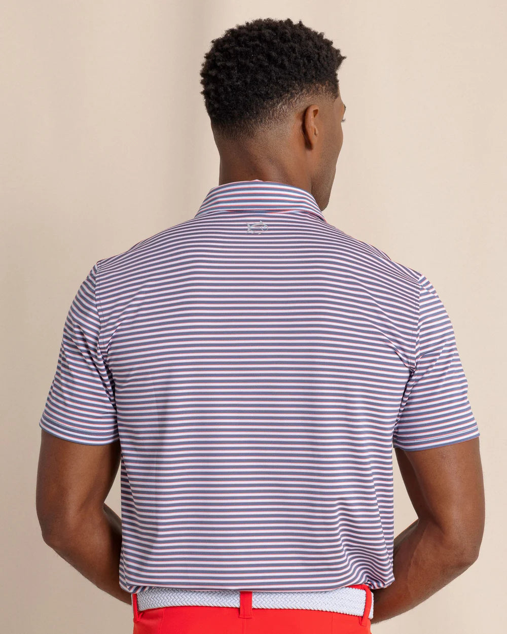 Bring a fresh spin to your classic polo with the Southern Tide Men's Driver Caravel Stripe Polo. Featuring internal collar stays and a sleek three-button placket, it keeps that timeless look alive. The stretchy fabric blend moves with you, making it perfect for everything from teeing off to tackling your to-do list. Comfort and style? Check and check!