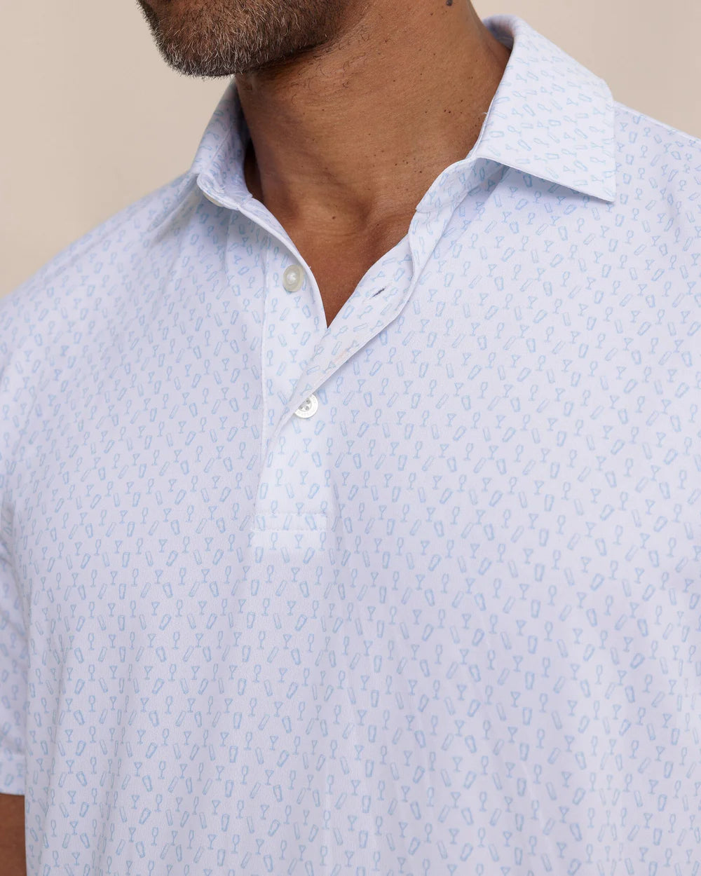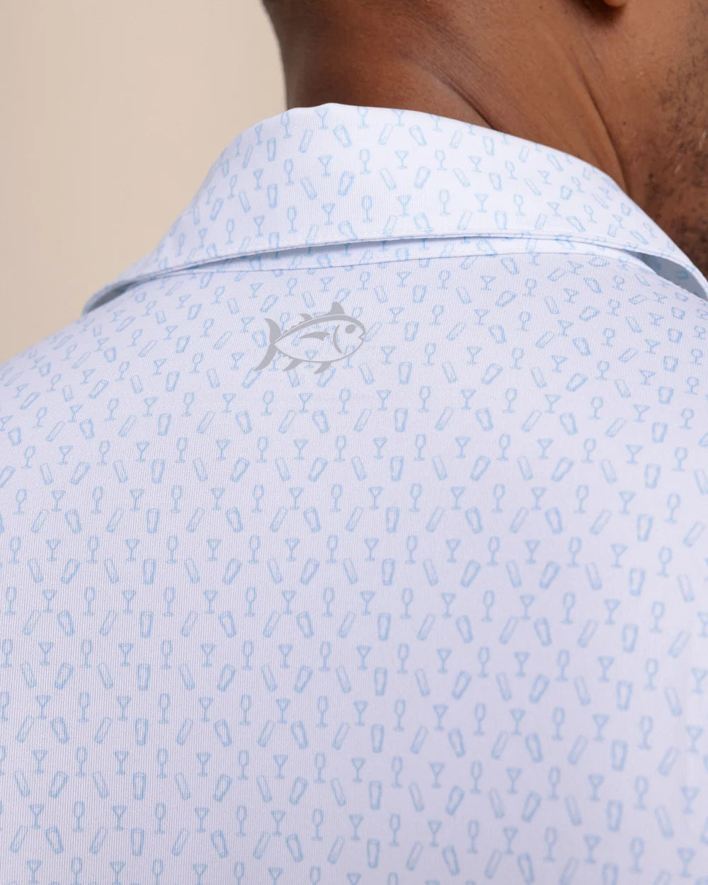 Elevate your style with the Southern Tide Men's Driver Cocktail Hour Polo. Its playful, all-over happy hour print brings a touch of coastal fun to your wardrobe. Made from breathable, moisture-wicking fabric, this polo keeps you cool and fresh whether you're out on the course or enjoying a casual day. Perfect for those who want to stay sharp and spirited from tee time to cocktail hour.