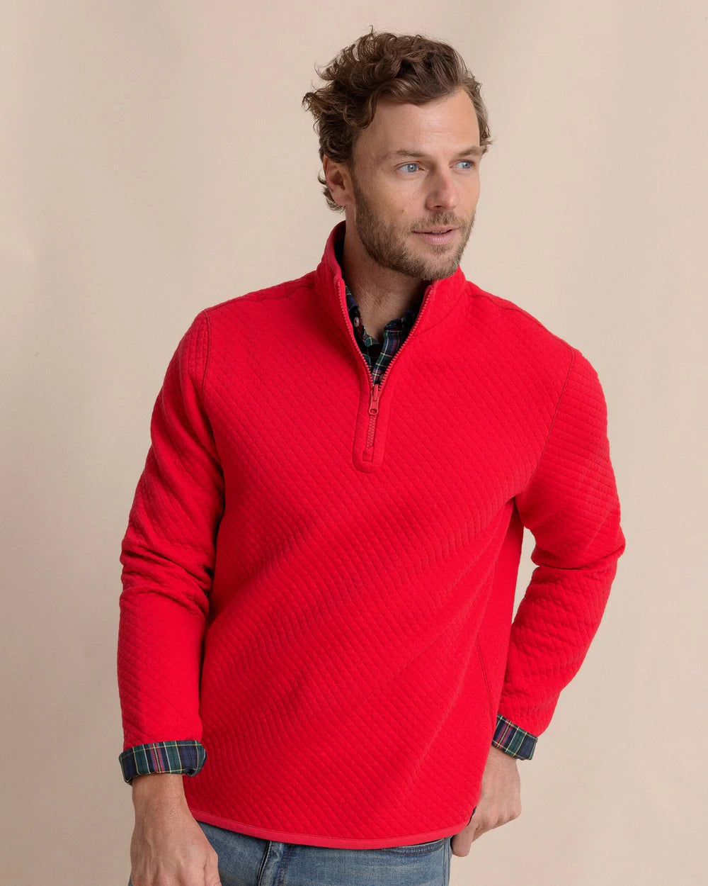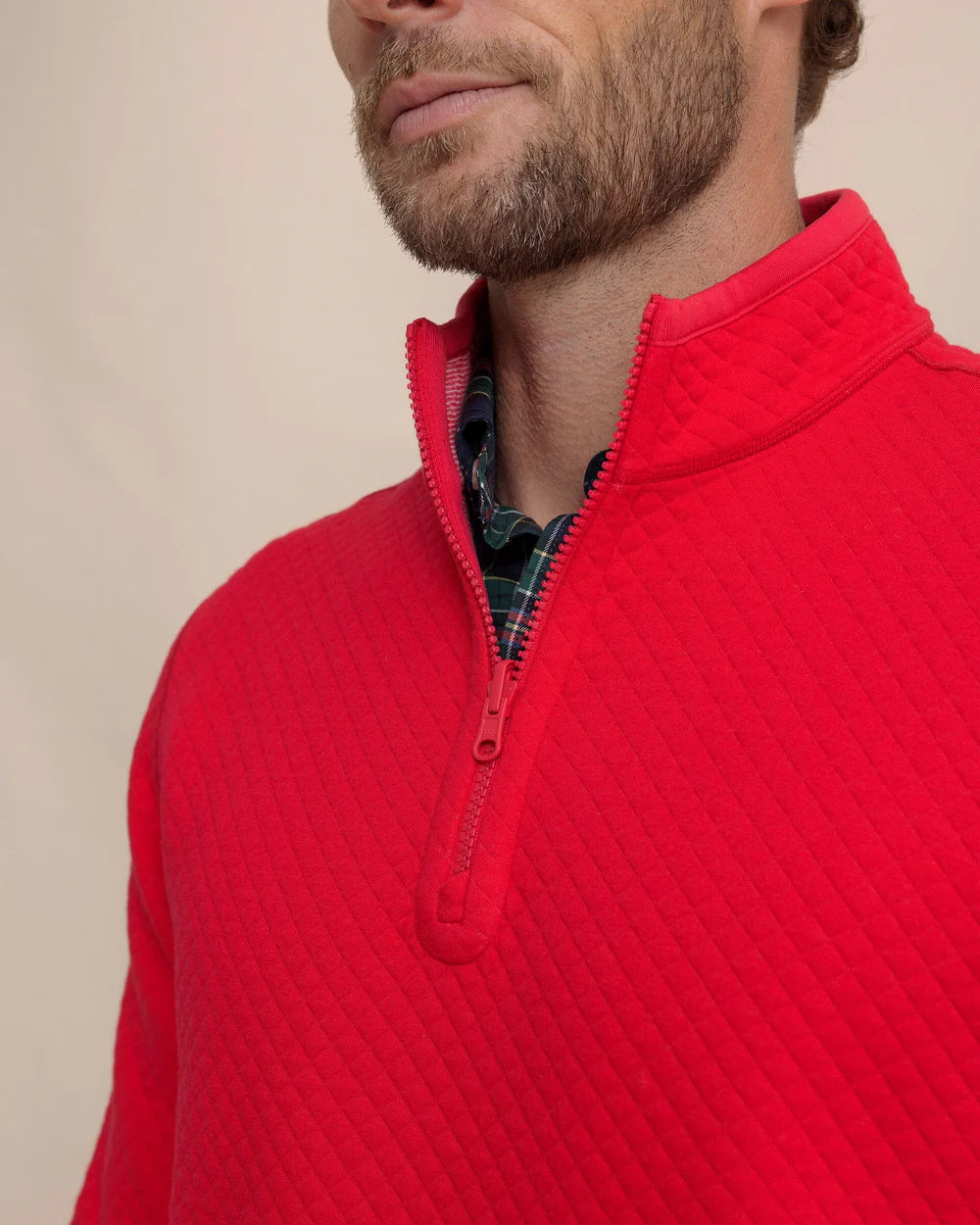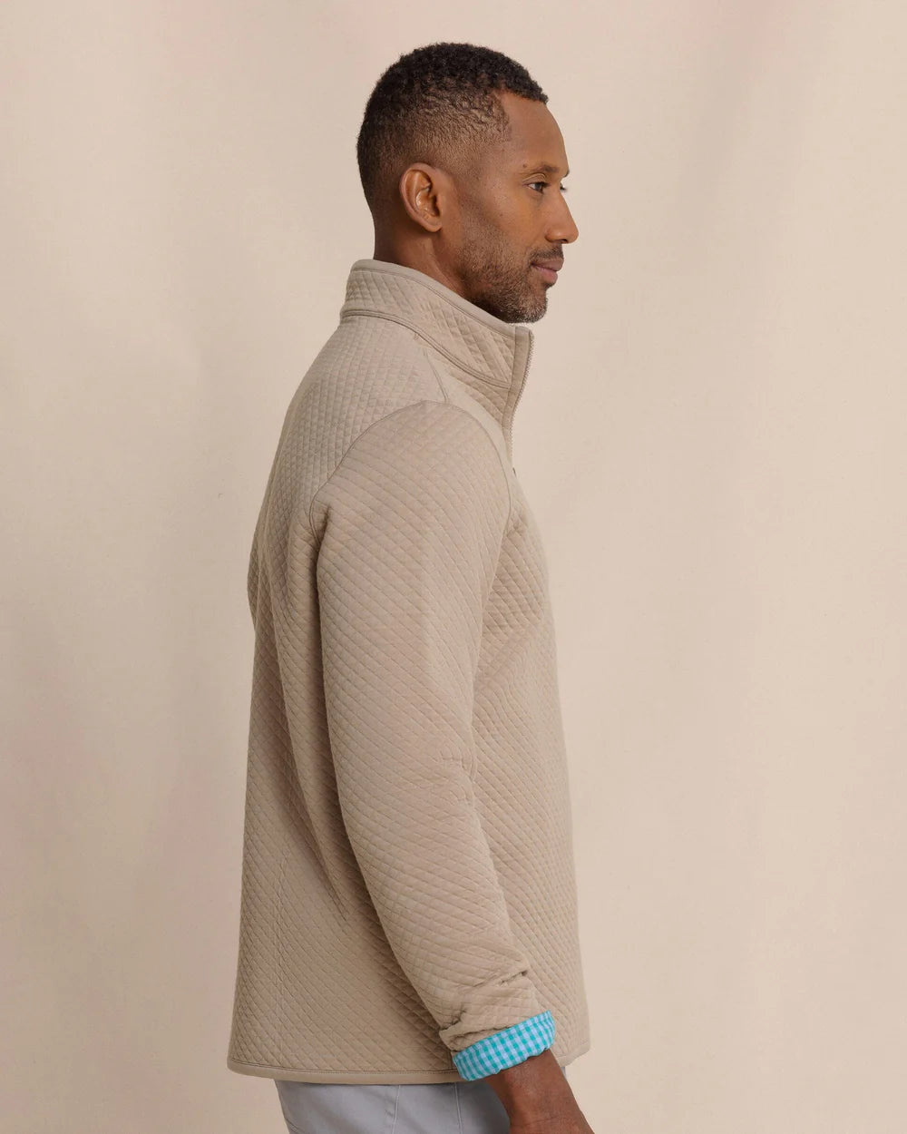 Experience double the style with the Southern Tide Men's Oak Island Reversible Quarter Zip Pullover. Flip it inside out to switch from sleek, quilted polish to a laid-back heather slub texture. With a comfy self-collar and an easy quarter-zip, it’s ready to keep you cozy from sunrise hikes to sunset hangouts. Two looks, one awesome layer—because why choose when you can have both?