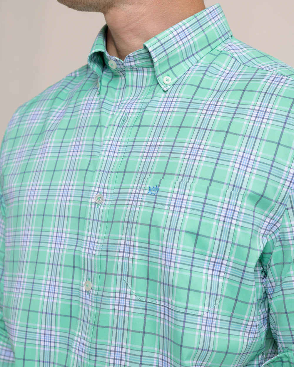 Get ready to elevate your style and performance with the Southern Tide Men's River Point IC Sport Shirt. Crafted with stretch, wicking, and UV protection, this sophisticated long-sleeve shirt will keep you cool and comfortable no matter the occasion. With unique details like two-button adjustable cuffs and branded buttons, the River Point Plaid is where function meets fashion.